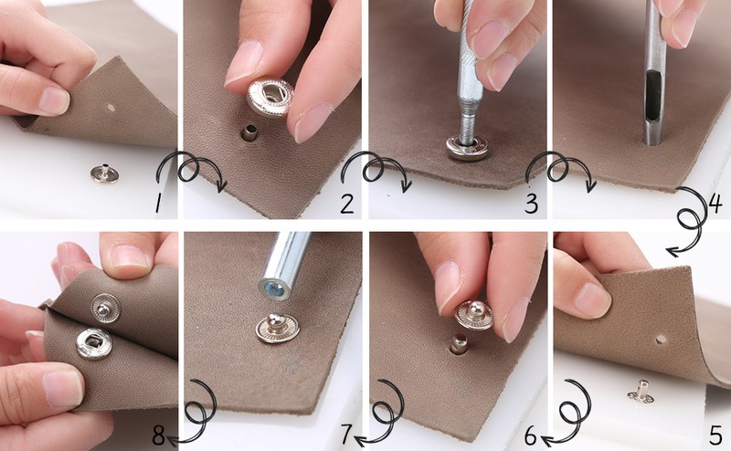 Étape 5-percez un autre trou sur le tissu avec l'outil de poinçonnage fourni, frappez avec un marteau.