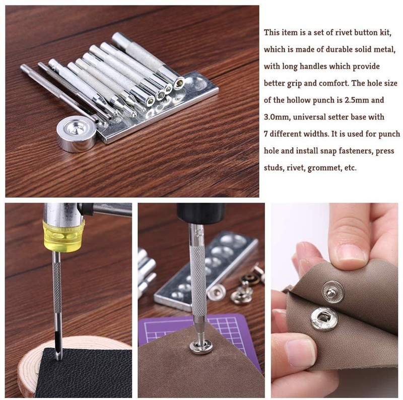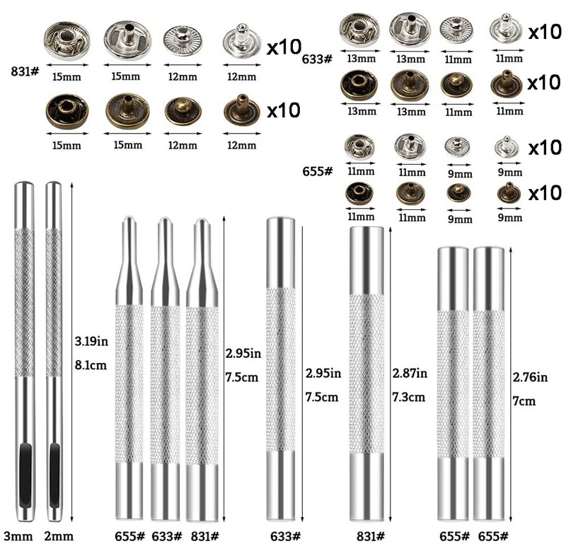 Lmdz – Kit D'Attaches À Pression En Cuir, Boutons Métalliques Avec Outils D'Installation Pour Vêtements, Cuir Veste, Jeans