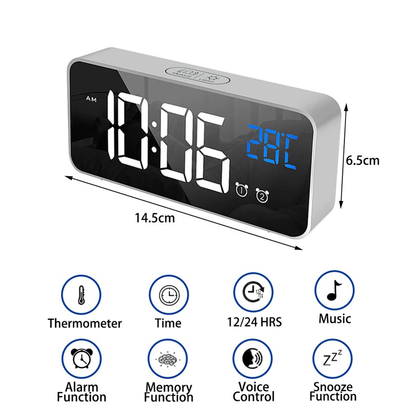 Double fonction de réveil: 2 réveils peuvent être réglés à tout moment séparément, également régler le mode snooze.