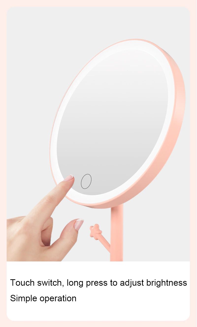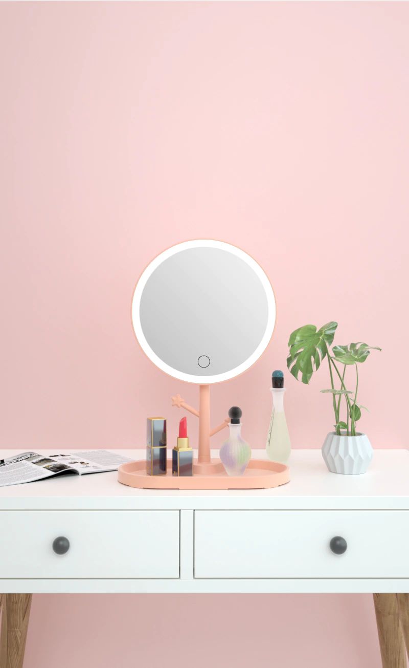 Miroir de maquillage LED avec lumière pour femmes, lampe de rangement de maquillage, miroir de vanité de bureau rond, miroirs cosmétiques, cadeaux de noël pour femmes