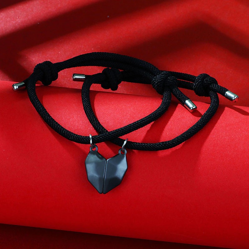 Aimant D'Amour Attire Les Couples, Collier Et Bracelet, Une Paire De Pierres De Souhait Simples Et Créatives Pendentif En Forme Cœur, Chaîne De Clavicule 2 Pièces/Ensemble