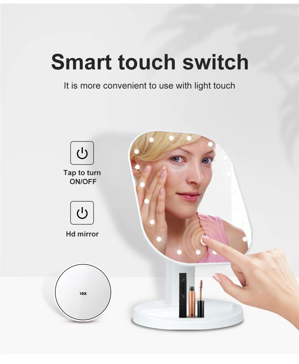 Miroir De Maquillage Multifonction Portable Avec Grossissement 10X, Contrôle Tactile, Lumières Led Réglables Rotation À 180 Degrés, Cadeau Pour Fille
