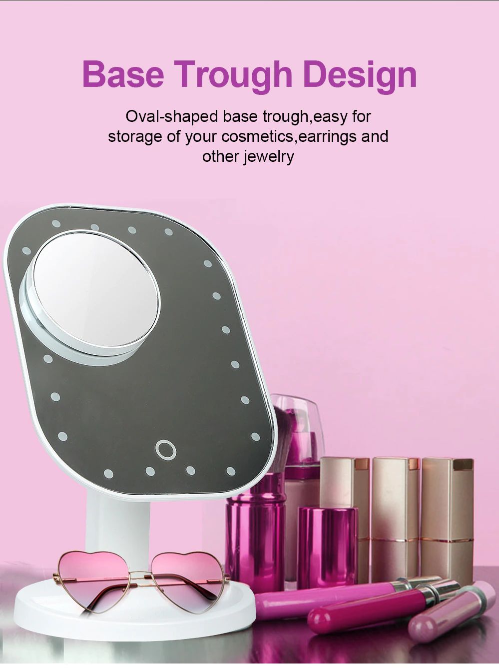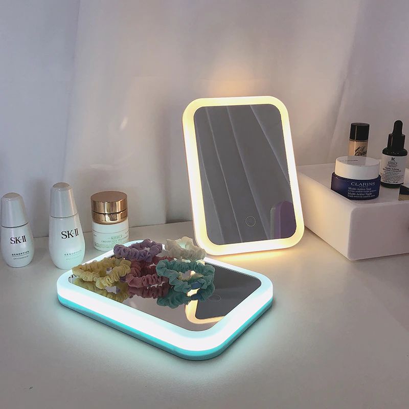 1. Il s'agit d'un miroir de maquillage lumineux de bureau, la luminosité peut être ajustée