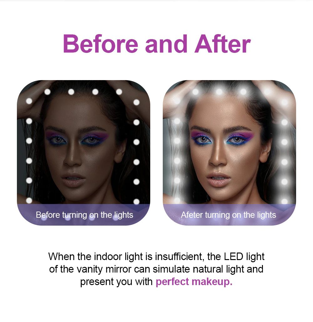 4. 20 lumières LED intégrées, il est pratique de toucher le maquillage dans les endroits peu éclairés.