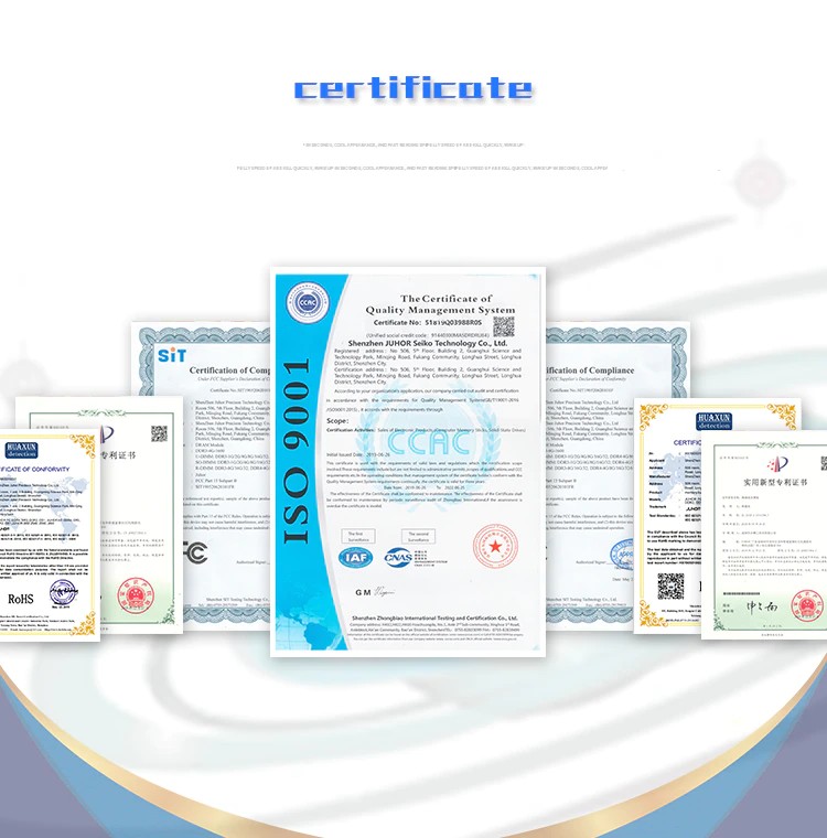 1-puces JUHOR utilise des particules rigoureusement testées, compatibles avec une large gamme d'ordinateurs, également compatibles avec les plateformes Intel et AMD. (Par exemple: Samsung, Hynix, Micron, magnésium, asie du sud Yisheng, Elpida), envoyer en fonction du hasard.