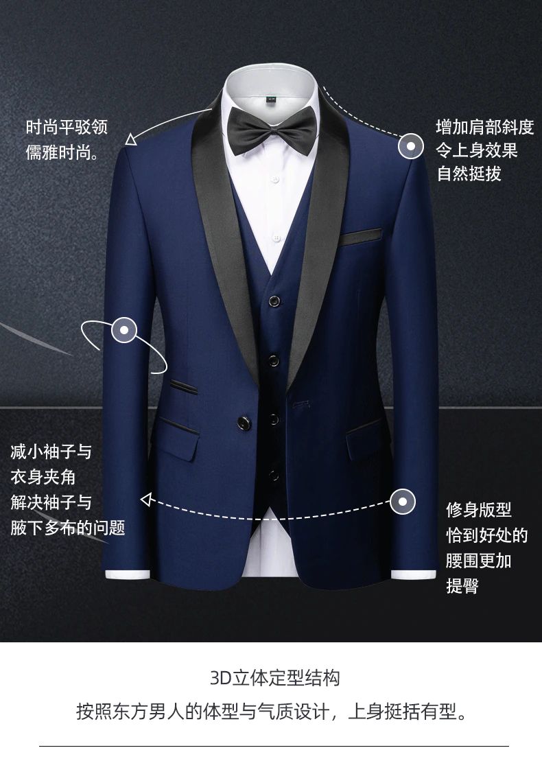 Ensemble 3 Pièces Pour Hommes, Costume De Bal Slim Formel/Homme Marié, Blazer De Mariage De Haute Qualité, Veste Habillée Et Pantalon
