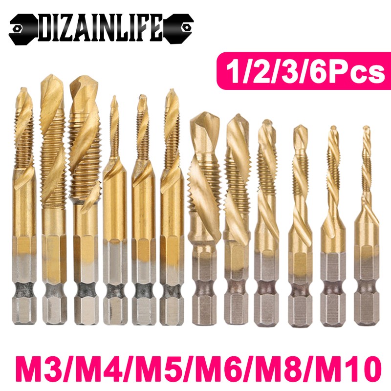Jeu De Forets À Filetage Métrique, Tige Hexagonale Plaquée Titane, Vis Hss Machine À Vis M3 M4 M5 M6 M8 M10, Outil À Main