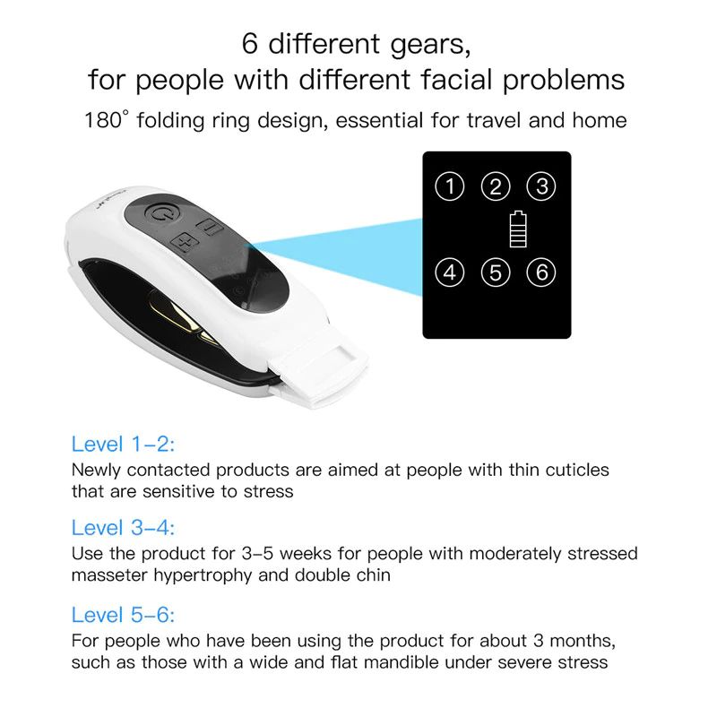 Niveaux 5-6: pour les personnes qui utilisent le produit depuis environ 3 mois, telles que celles qui ont une mandibule large et plate sous un stress intense