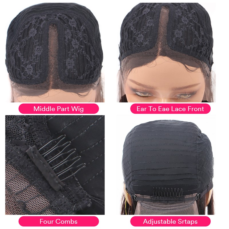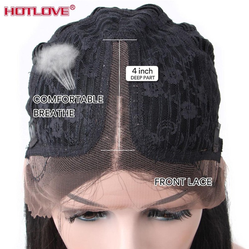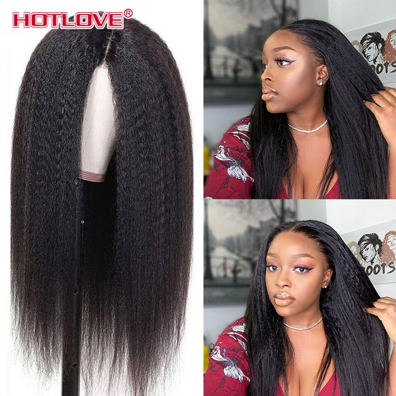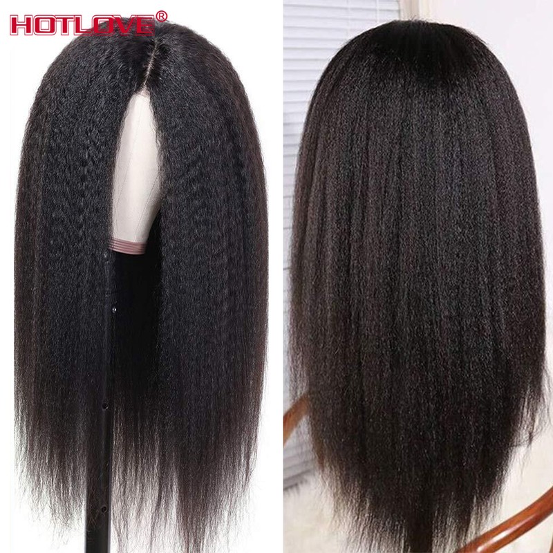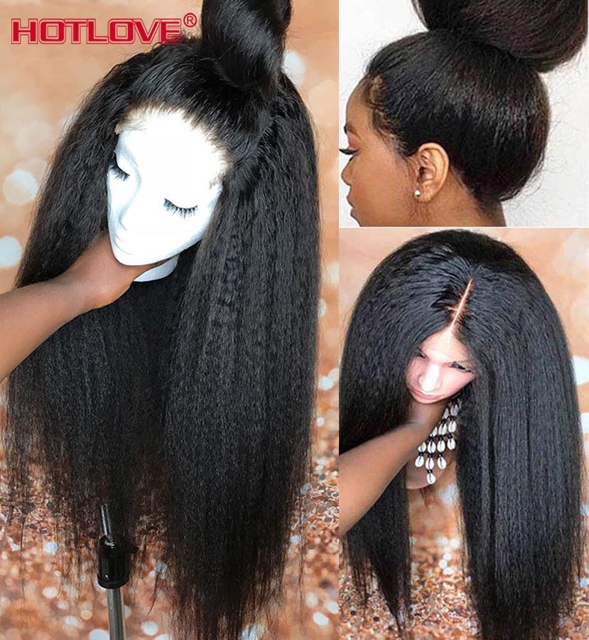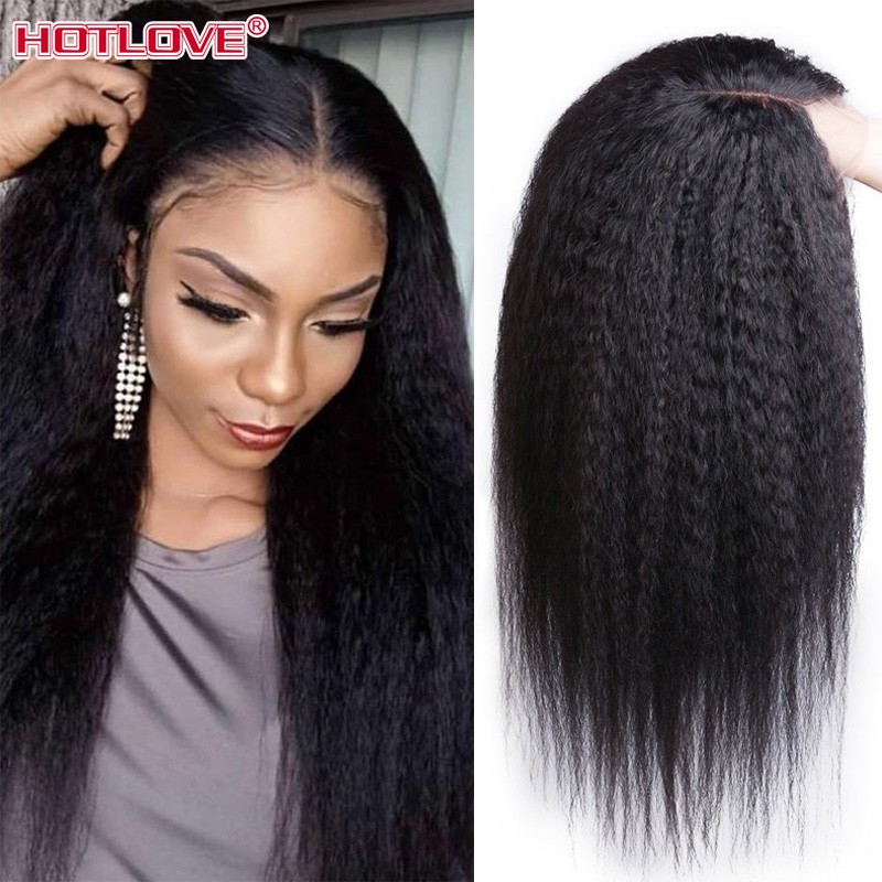 Perruque Lace Frontal Wig péruvienne Remy naturelle crépue lisse 13x1, 28 pouces, densité 180%