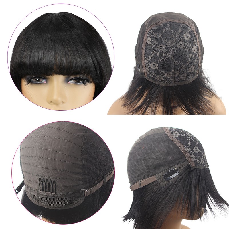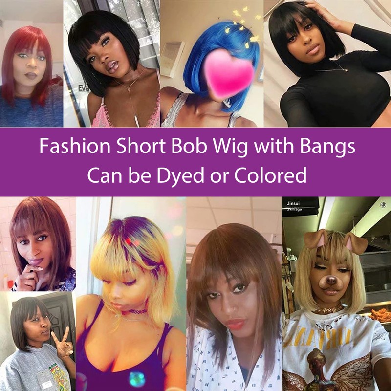 Misia – Perruque Bob Brésilienne Remy Avec Frange, Cheveux Naturels Lisses, 14 Pouces Entièrement Fabriqués À La Machine, Pour Femmes