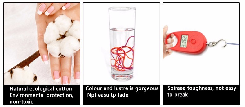 Le fil de coton est en version normale, facile à coudre. Le fil de soie est un nouveau produit, il est fabriqué en coton, pas en vraie soie. Il est plus lisse, brillant et beau, mais difficile à coudre.