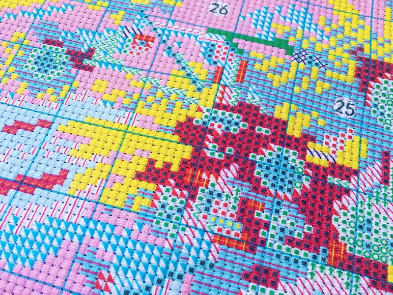Couleur du tissu brodé: blanc (motif imprimé point de croix)