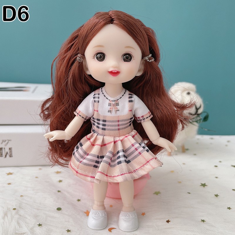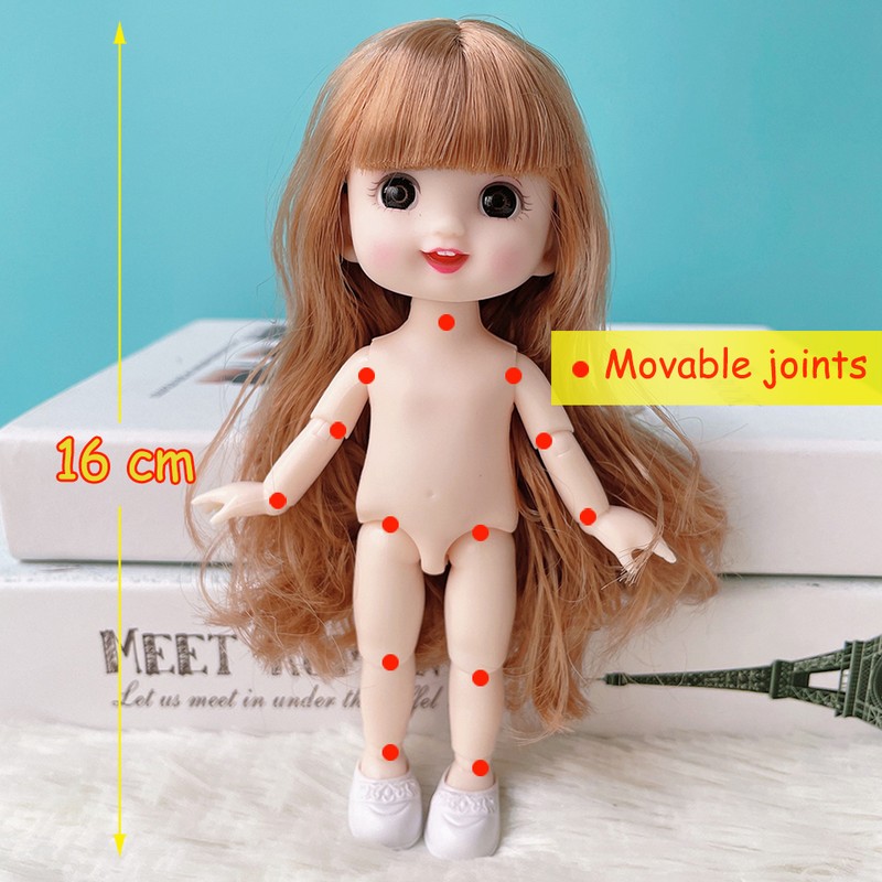 Bjd – Mini Poupée Articulée, 16 Cm, 13 Pcs 3D Bébé Grands Yeux Beau Jouet Diy Avec Vêtements Poupée Habillée À La Mode Nouveauté, 1/12