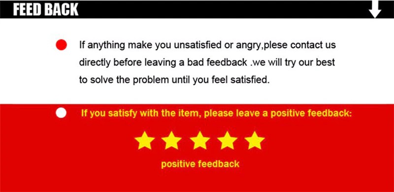 1. Veuillez laisser un bon retour pour chaque oeder pour être votre précieux client