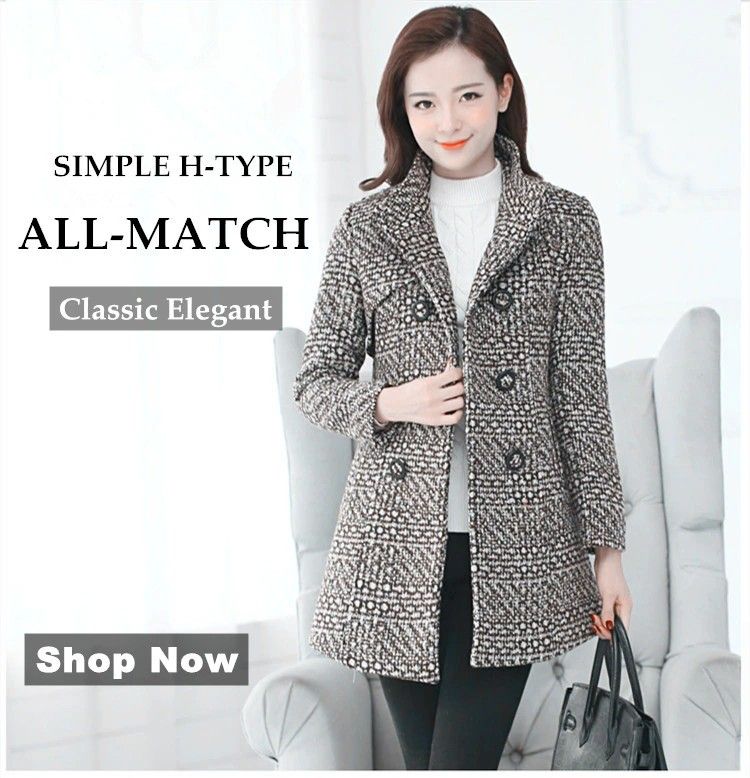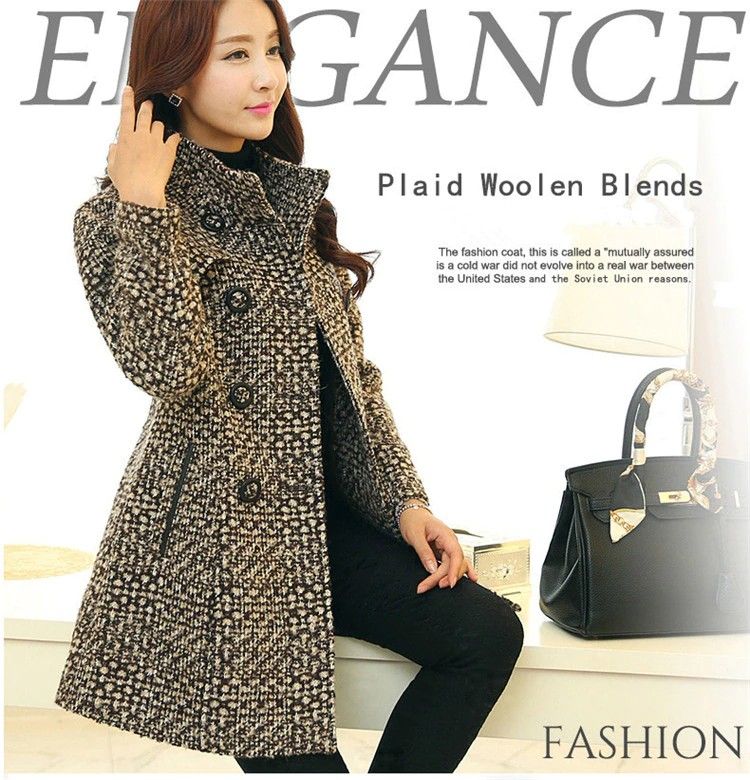 Nouveau Femmes Laine Mélanges Manteau Hiver Le plus récent Automne Mode Élégante Mère Col Roulé Plaid Mince Longue Tweed Laine Vêtements D'Extérieur Femme