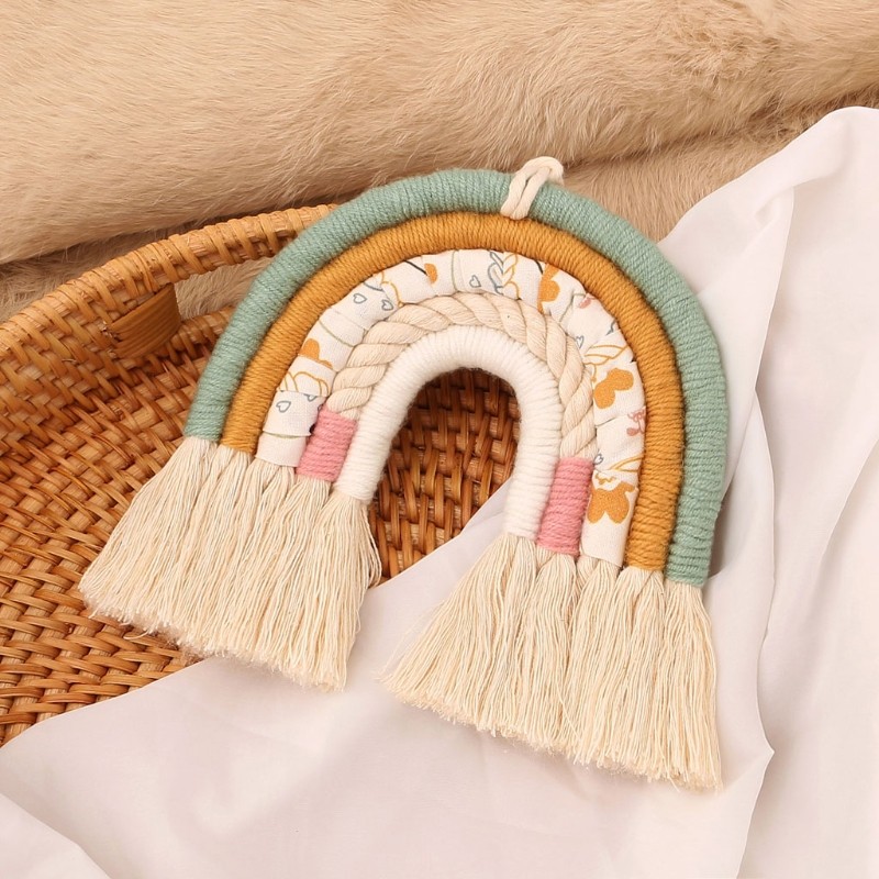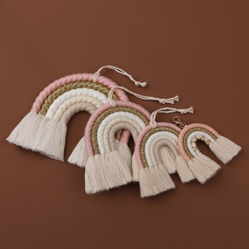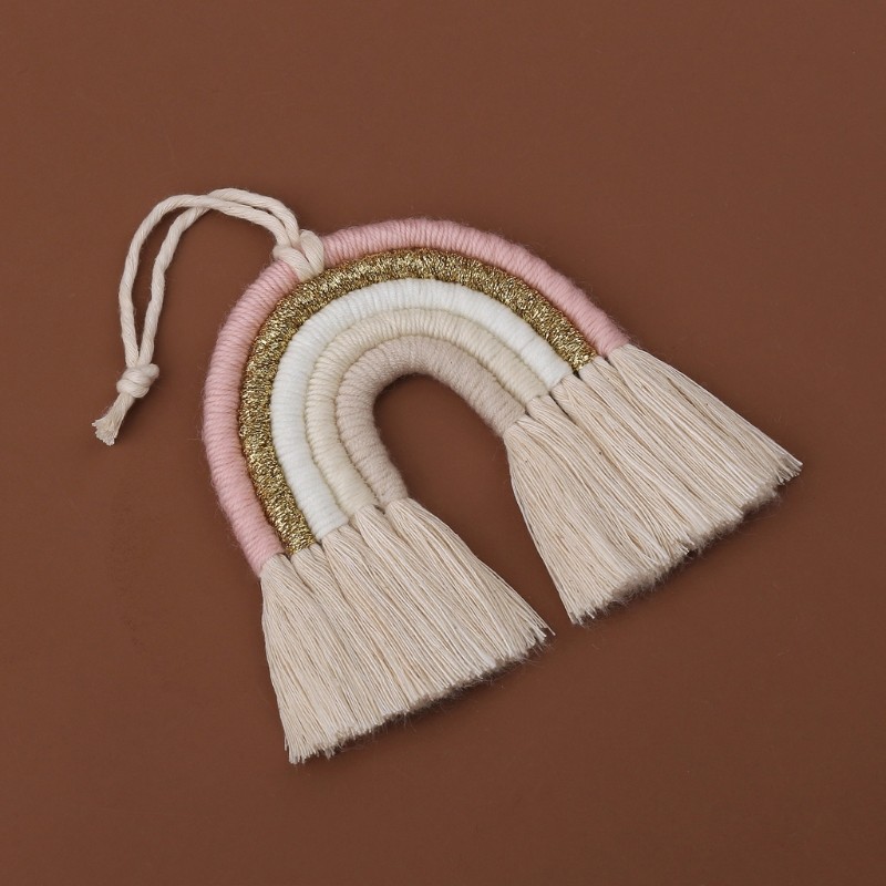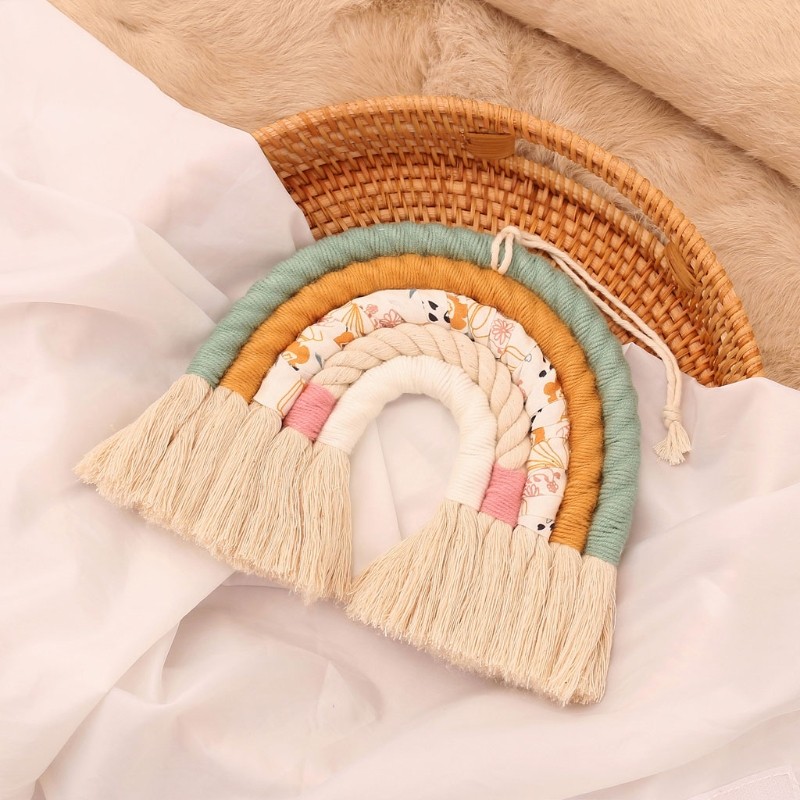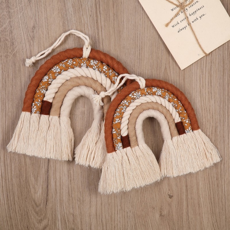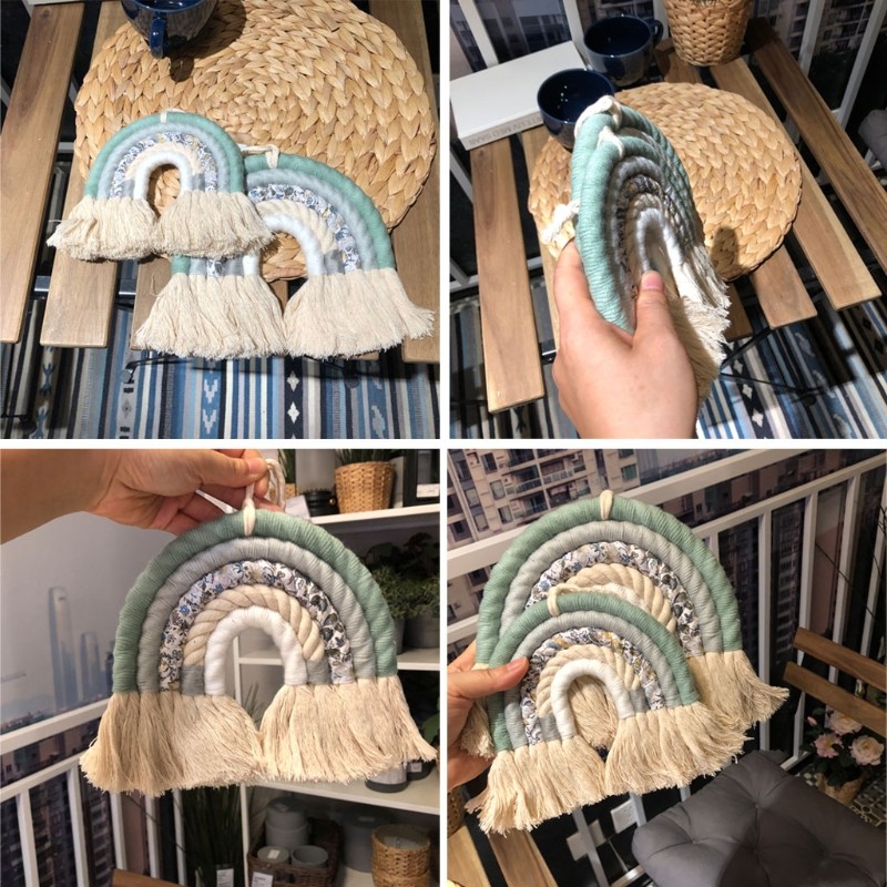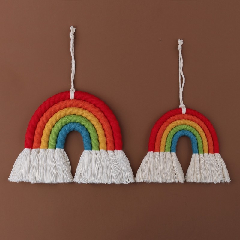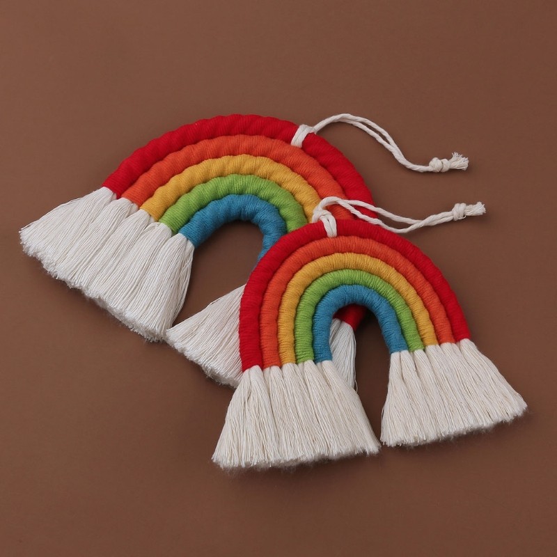 Fabriqué à la main arc-en-ciel. Comprend 5 lignes avec des couleurs vives, de belles décorations faites à la main en fil et en corde de coton.