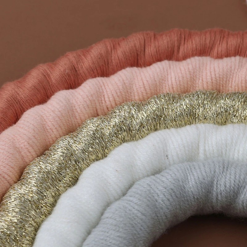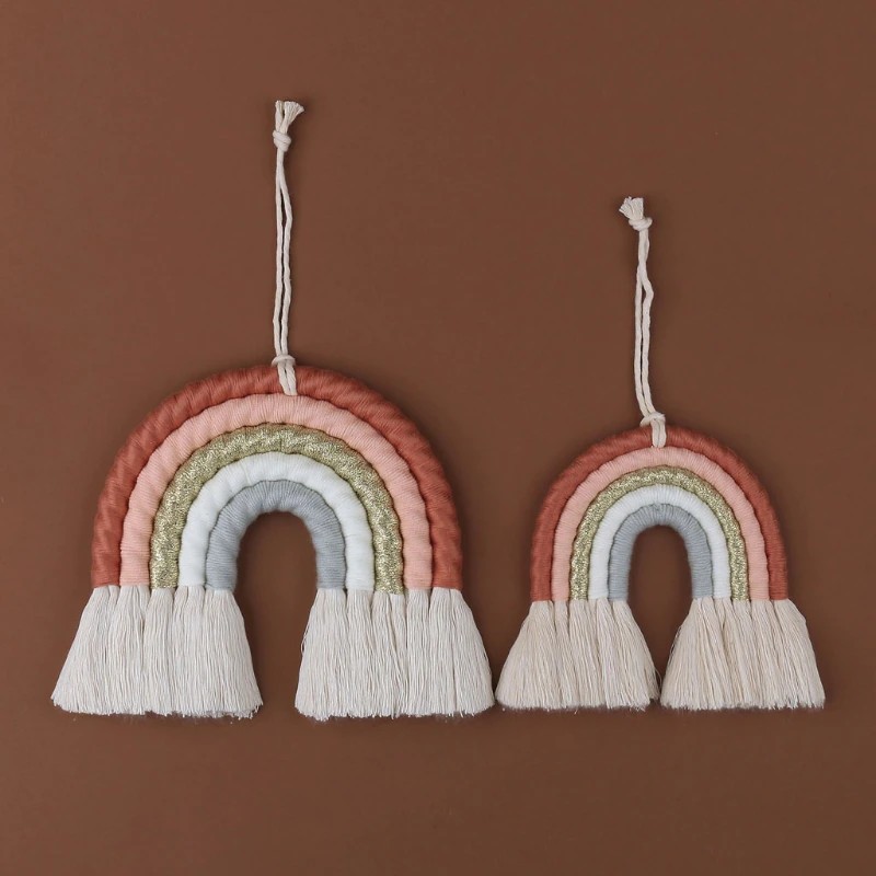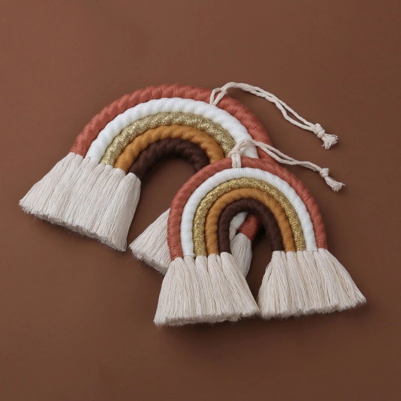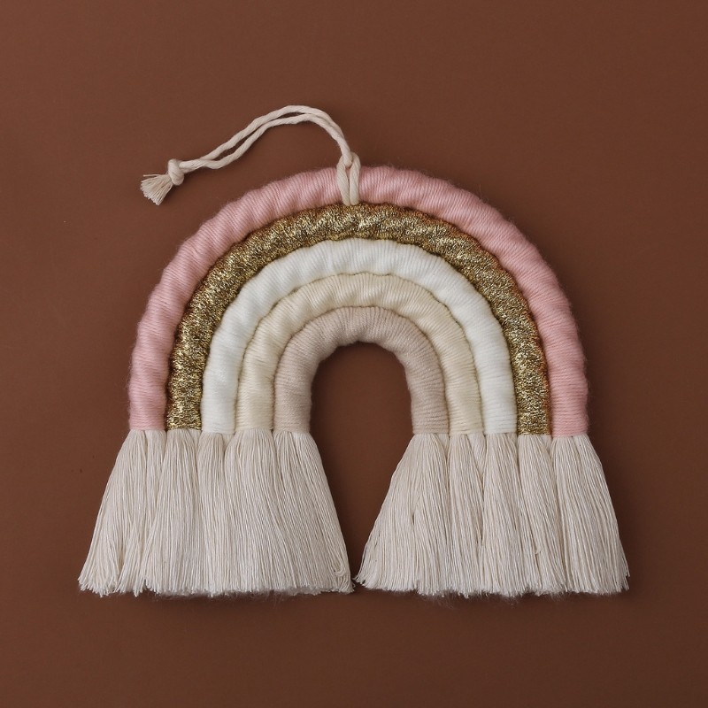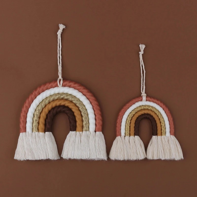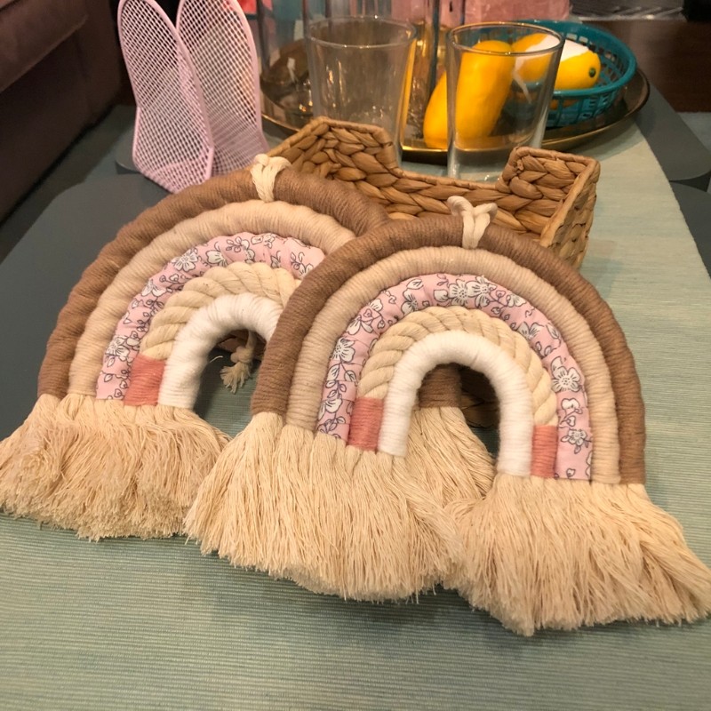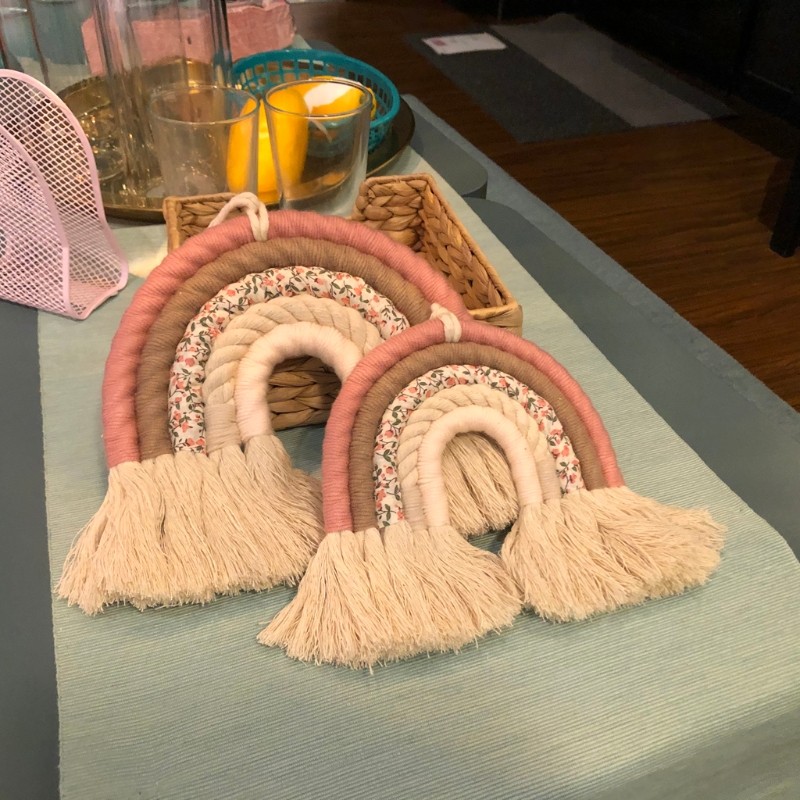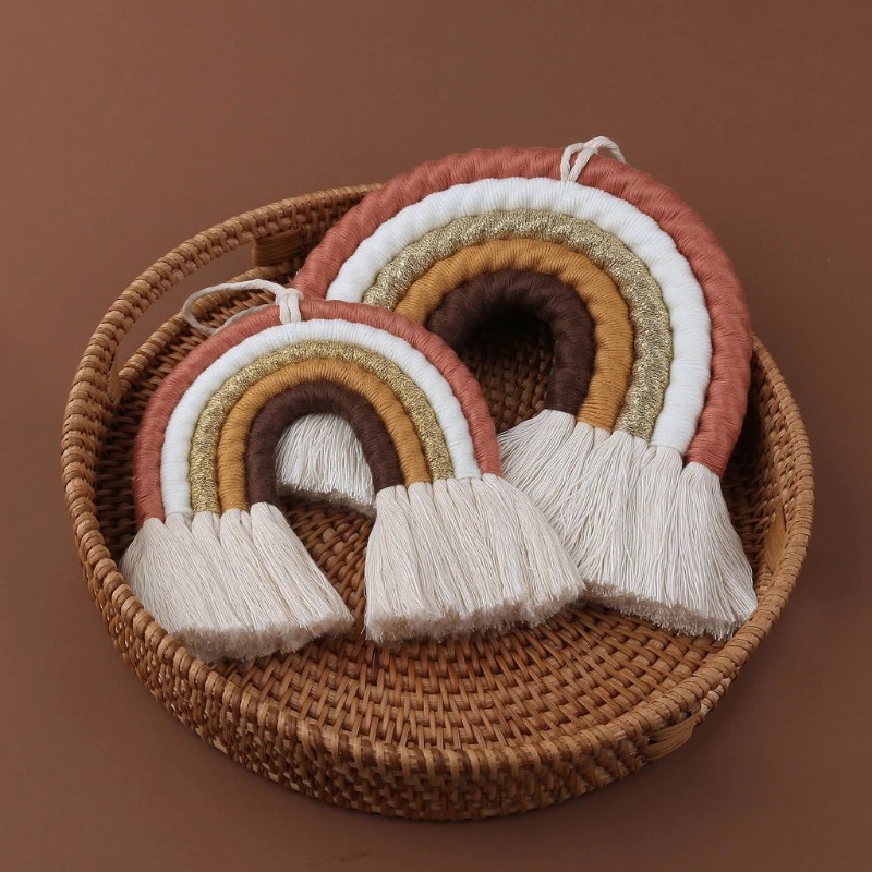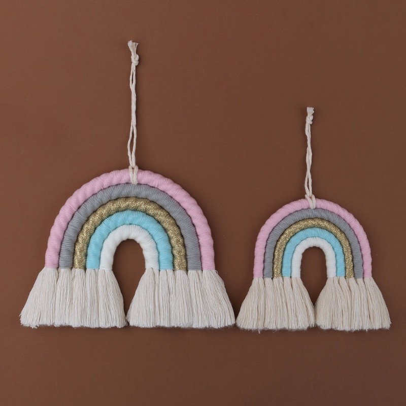 Fabriqué à la main arc-en-ciel. Comprend 5 lignes avec des couleurs vives, de belles décorations faites à la main en fil et en corde de coton.