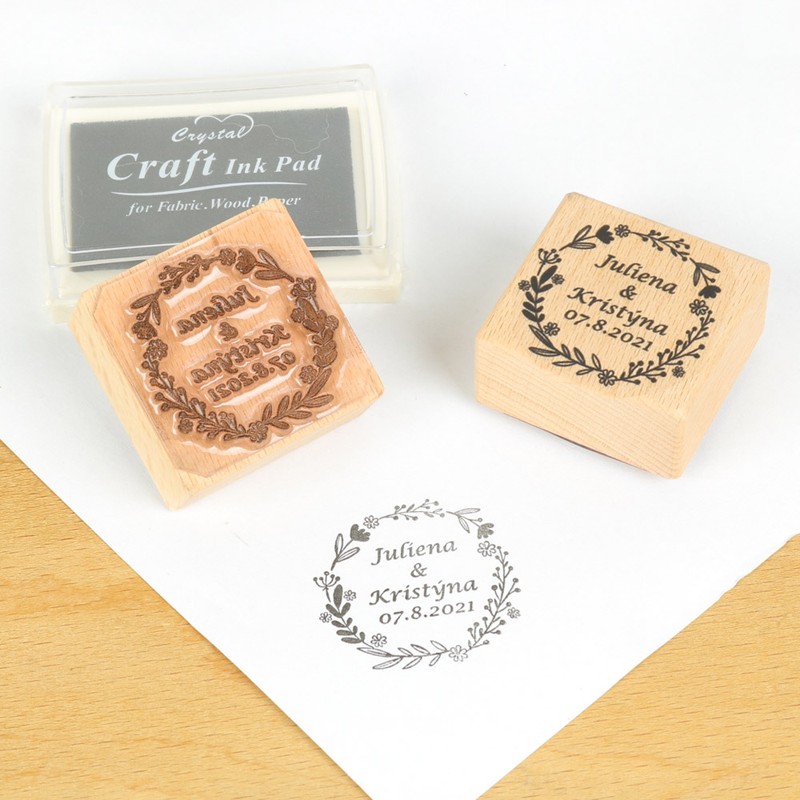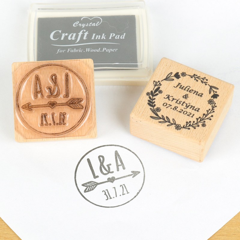 Sceau De Timbre En Bois Personnalisé Avec Nom Et Date, Logo Personnalisé, Papeterie D'Invitation Bricolage, Décoration De Mariage Vintage Rustique