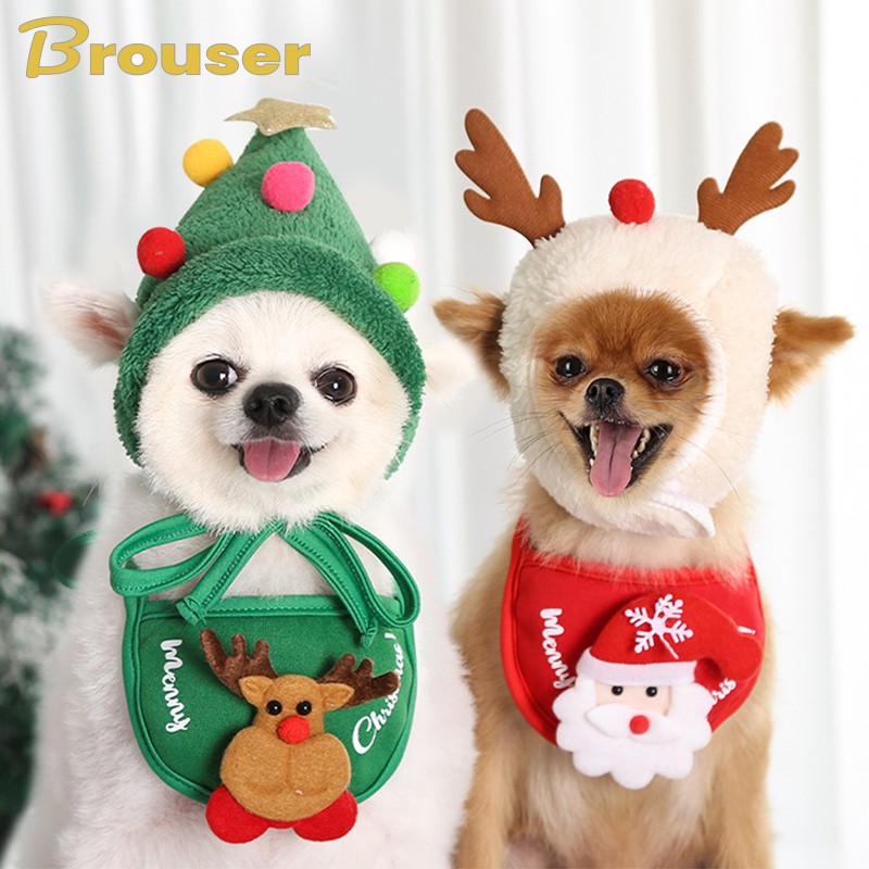 Chapeau De Noël En Bois Pour Animaux De Compagnie, Serviette De Salive, Boules Multicolores Vêtements Pour Chien Bavoir Chiot, Fournitures Pour Habiller Noël