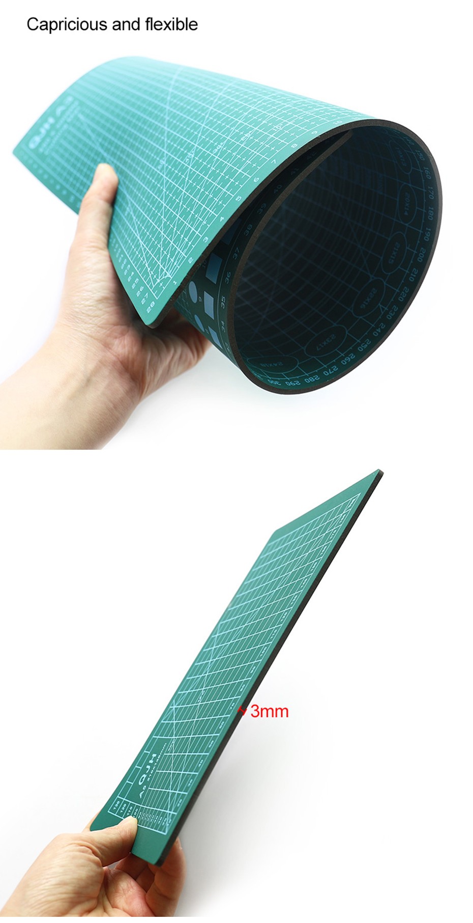 3. construction Durable de 3mm, 3 couches pour une coupe intensive, compatible avec les couteaux rotatifs et les lames droites. La couche de noyau super résistante est conçue pour résister aux coupures les plus difficiles-protégez votre surface de travail!