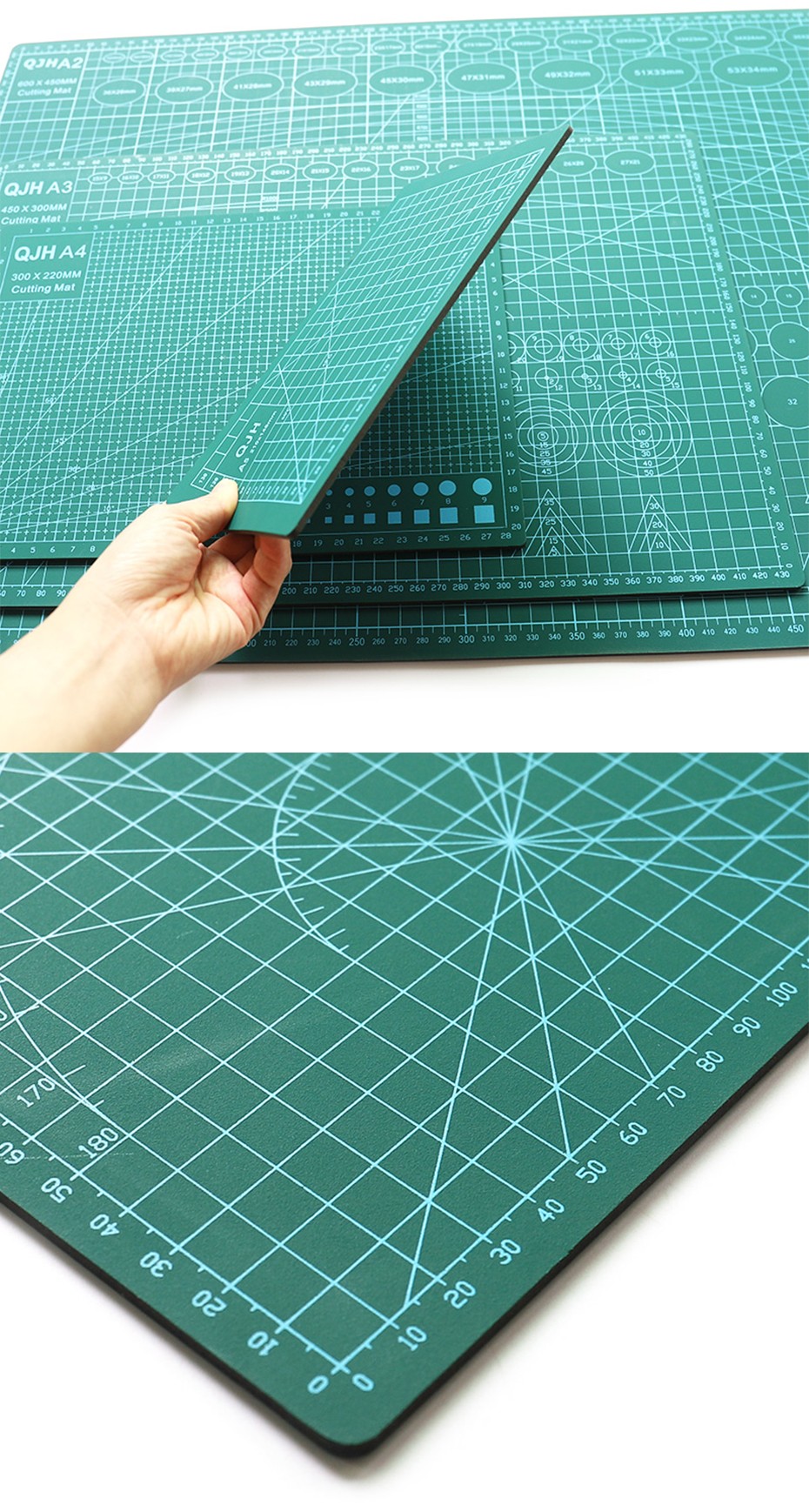 1. Le tapis de coupe d'auto-guérison double face de qualité professionnelle a des lignes de grille et des angles métriques faciles à lire d'un côté et des lignes de grille et des angles impériaux (pouces) du côté opposé. Les tapis Double face offrent une plus grande flexibilité et deux fois la durée de vie utile des tapis simple face.
