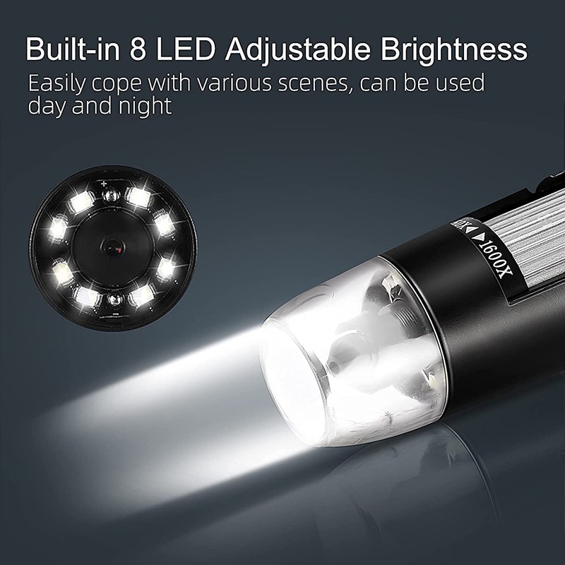 Microscope Numérique Professionnel Usb 1000X 1600X 8 Leds, Microscope Électronique Endoscope Zoom Caméra Loupe + Support De Levage 2Mp