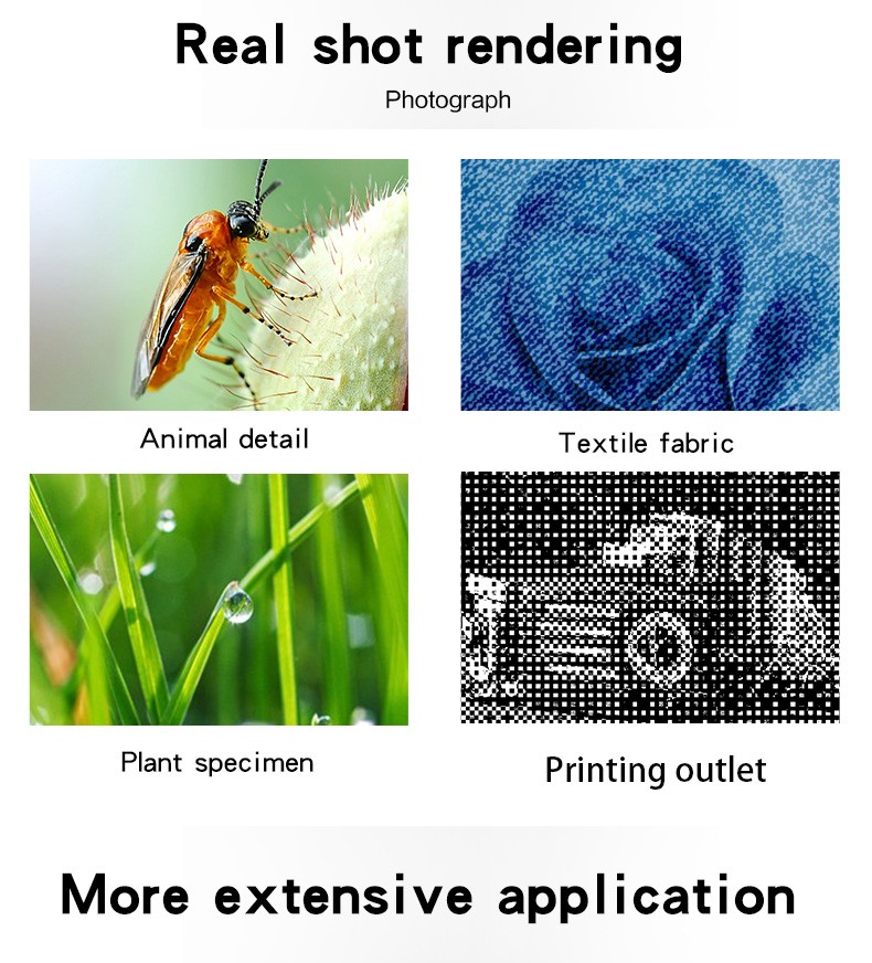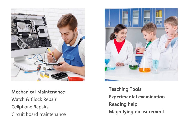 6. Utilisez cet appareil pour: examiner les bijoux fins, les pièces de monnaie, les timbres, l'électronique, l'inspection industrielle, l'inspection des pièces d'ordinateur, l'inspection des modules de télécommunication, l'outil d'enseignement scientifique, la recherche en laboratoire, l'analyse médicale, l'outil de recherche scolaire, examen de dissection d'insecte, examen de dissection de plante, examen de peau, examen de cuir chevelu, Inspection de Textile, Inspection de bijoux, Inspection de Collections/pièces de monnaie, Inspection d'impression, aide à la lecture, enseignant ajouter comme projet, présentation ou simplement l'utiliser pour s'amuser un peu.