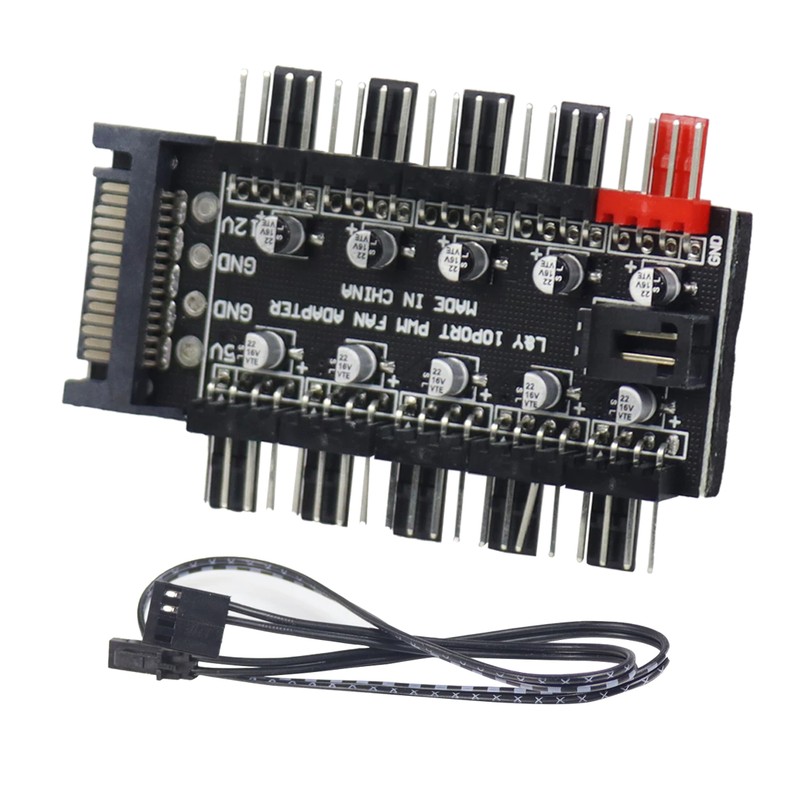 Adaptateur De Contrôleur De Vitesse Ventilateur Pwm Hub 1 À 10 Sata Molex, Refroidisseur De Refroidissement 4 Broches 12V Avec Led Pour Minage