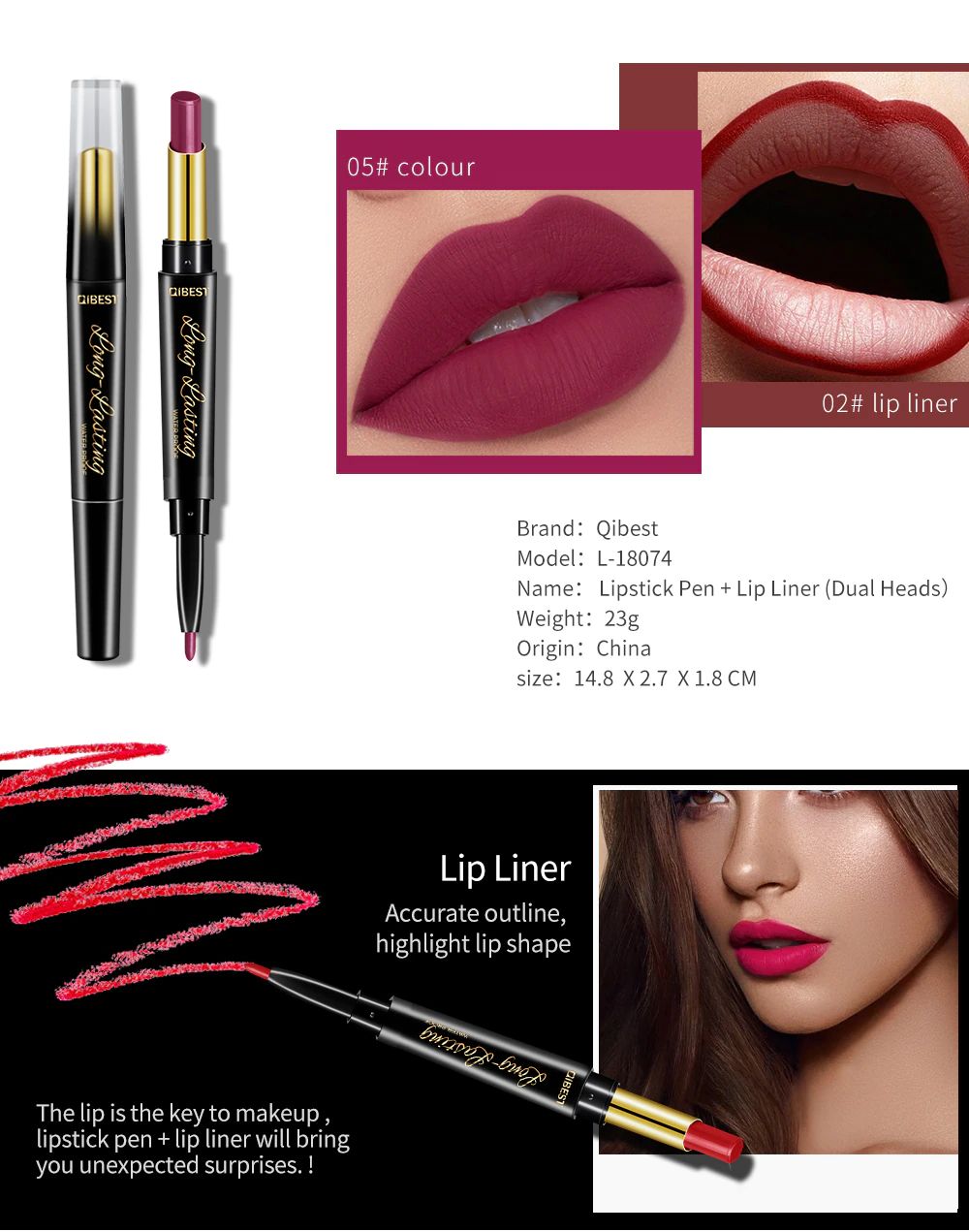 QIBEST – rouge à lèvres mat 2 en 1 en velours, crayon imperméable, Contour Durable, couleur chair, Sexy, teinte rouge, hydratant, longue durée, cosmétiques