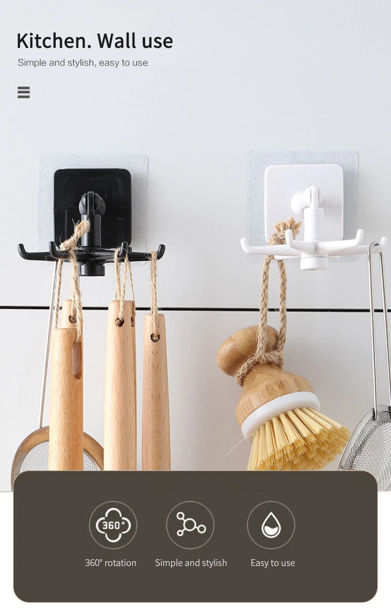 Crochets Muraux Sans Poinçon À Six Mâchoires, Ustensiles De Cuisine Rotatifs À 360 °, Cintre De Pesage Surdimensionné Étagère Salle De Bain, Rangement Domestique Étanche