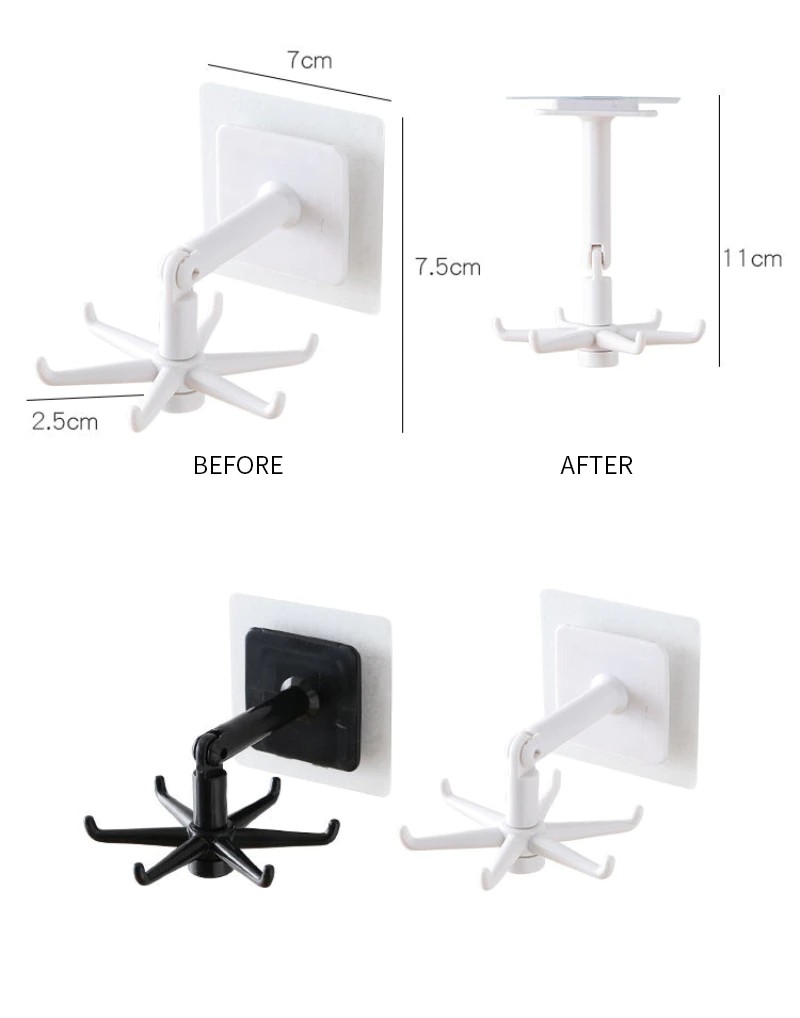 Le nouveau crochet rotatif à 360 degrés à six mâchoires est livré avec un patch et peut être installé sans perçage.