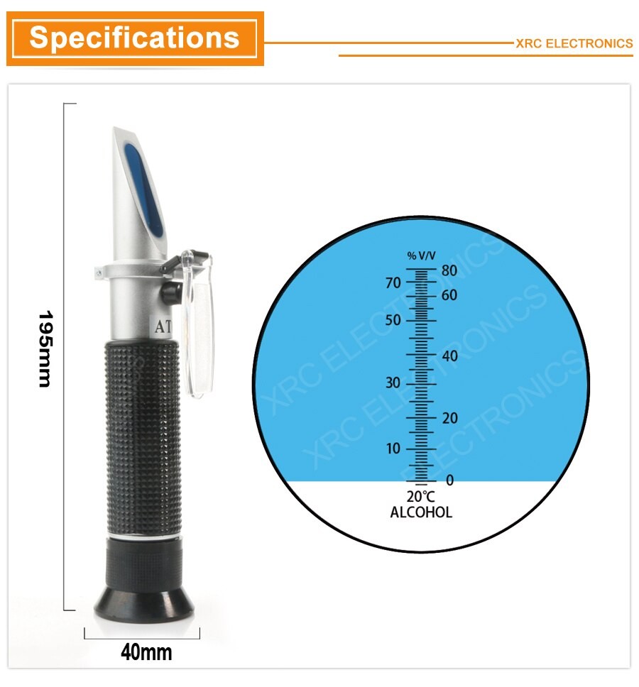 Réfractomètre RZ alcool alcoolomètre mètre 0 ~ 80% V/V ATC hydromètre concentration spiritueux testeur réfractomètre