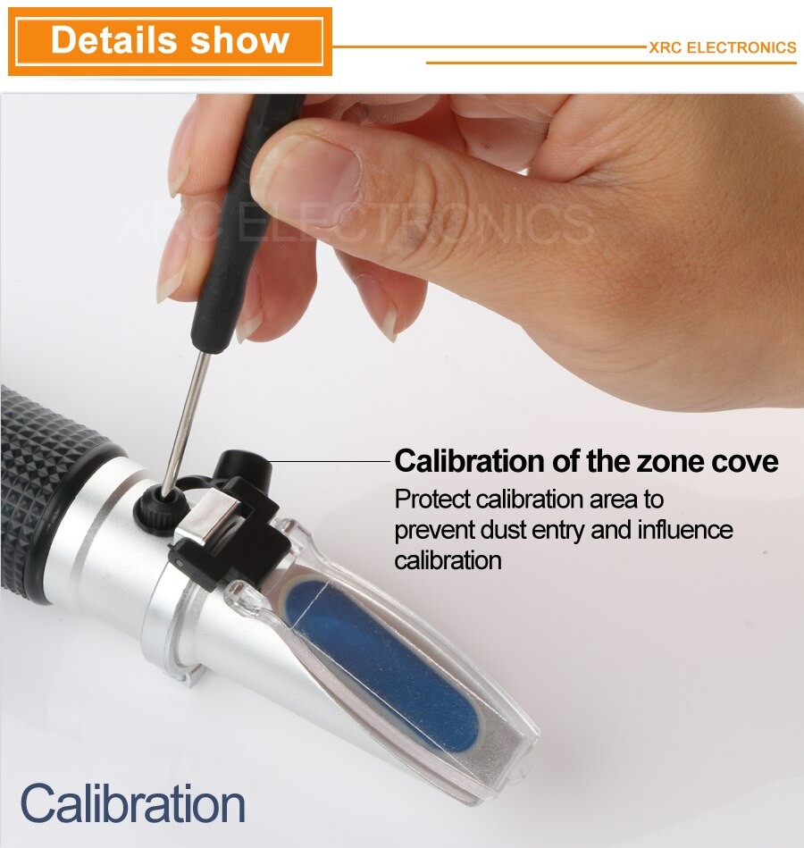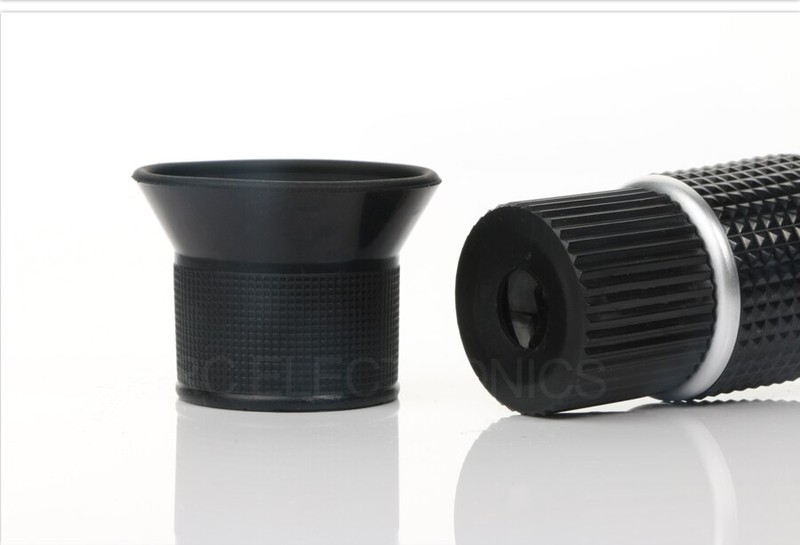 Facile et très pratique à utiliser. Placez quelques gouttes de liquide sur la partie optique du réfractomètre, couvrez le prisme (le liquide se répandra plus facilement sur le prisme), regardez à travers l'oculaire contre la lumière (focus, si nécessaire) et vous pourrez lire la valeur du résultat sur l'échelle.