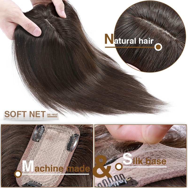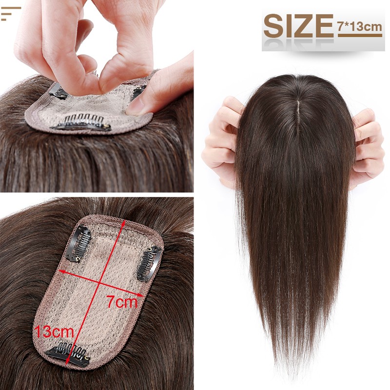 S-Noilte 7X13Cm Cheveux Toppers Cheveux Humains Soie Base Cilp Perruques Clip Dans Les Extensions De 33G-53G Morceau De 10 Pouces Natutal Cheveux