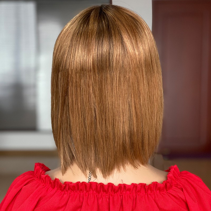 Perruque Bob Brésilienne Naturelle Remy, Cheveux Courts Lisses, Ombrés Blond Miel, Faite À La Machine