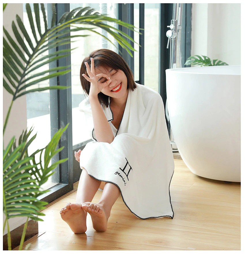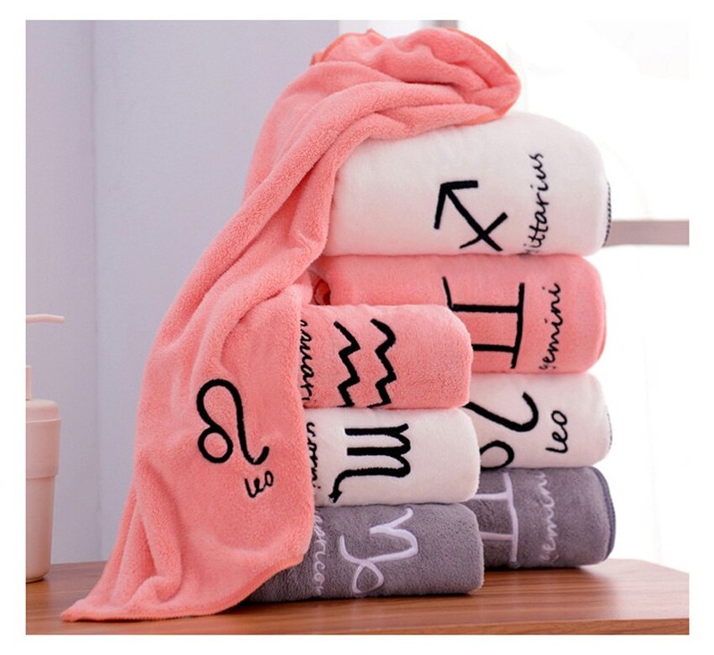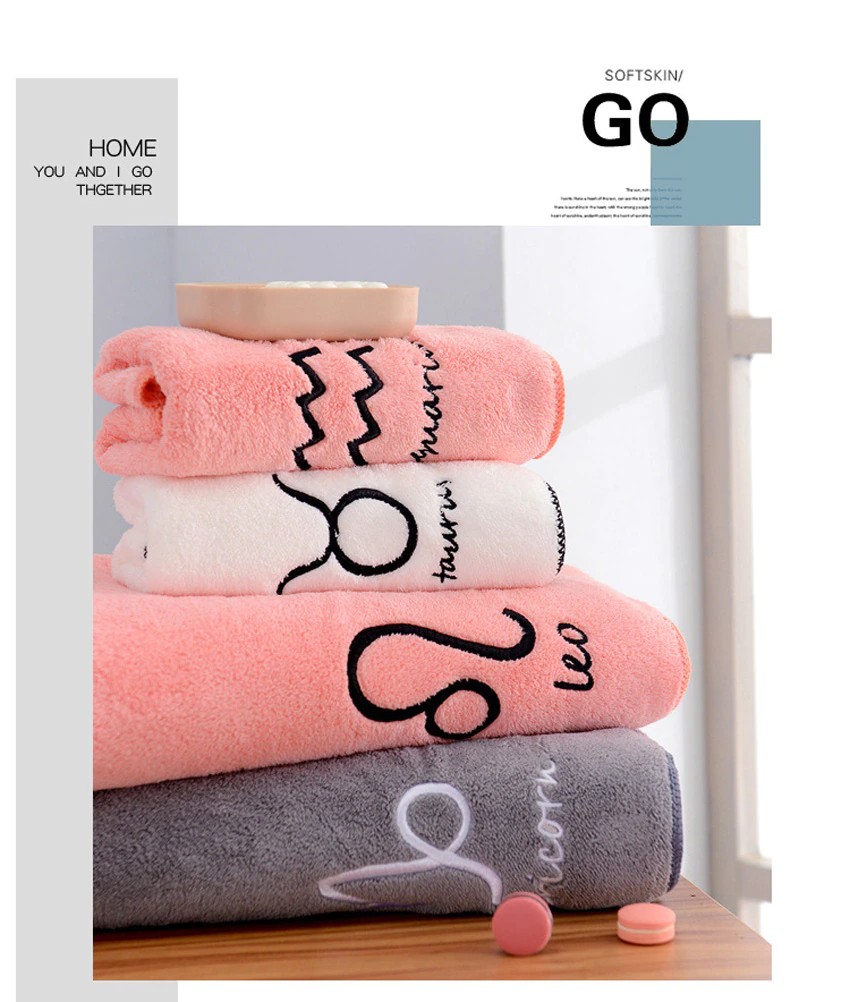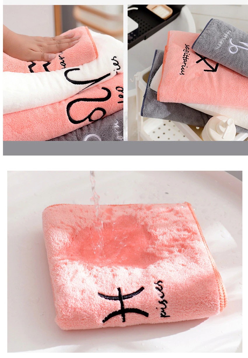 Serviette De Bain Pour Le Visage, Ensemble De 12 Lettres De Constellation Brodées, Grande Absorption D'Eau Forte Pour Adultes