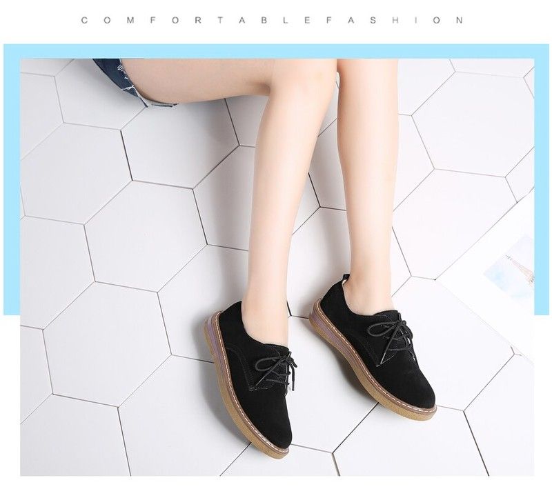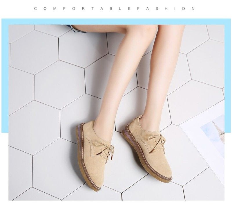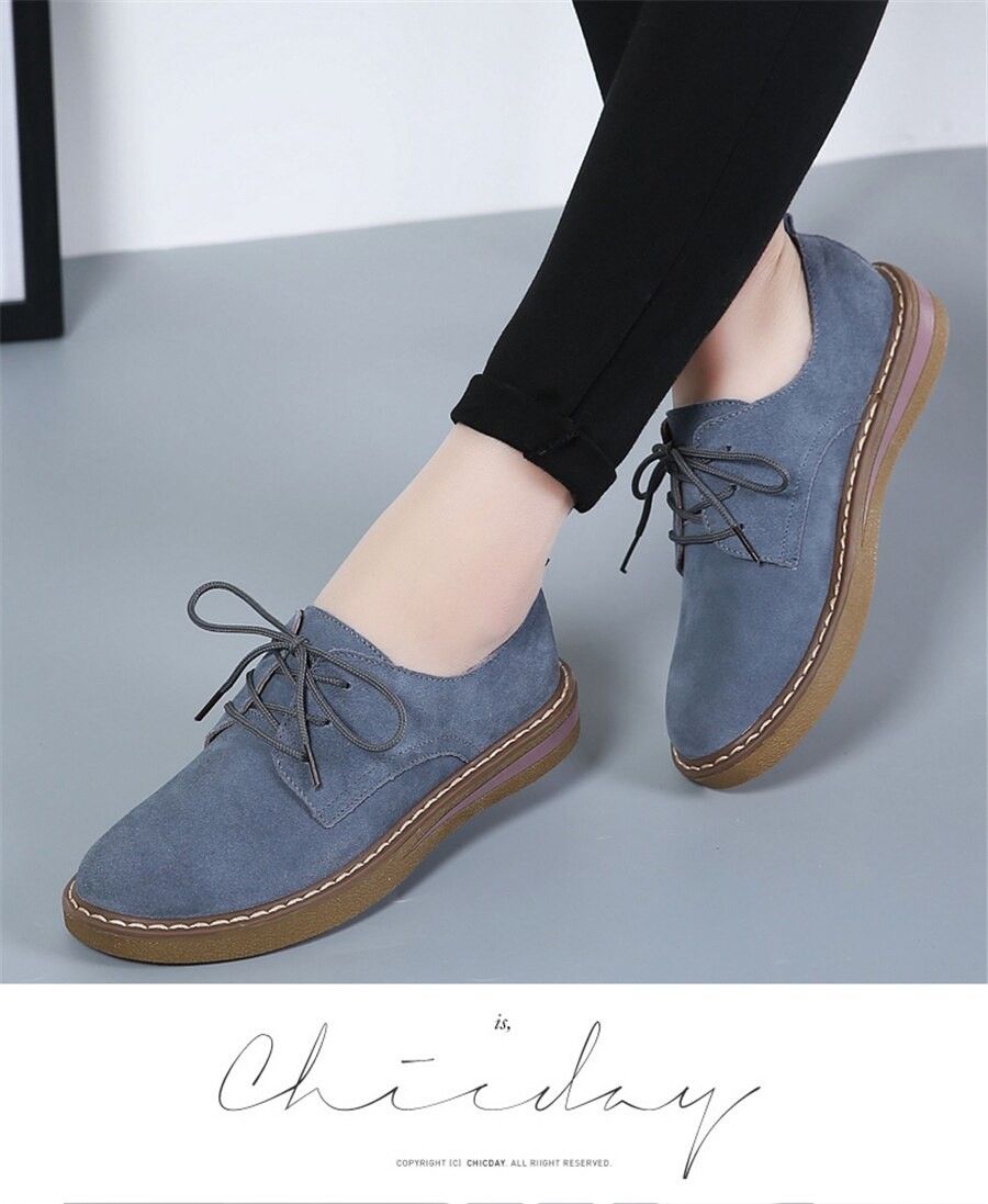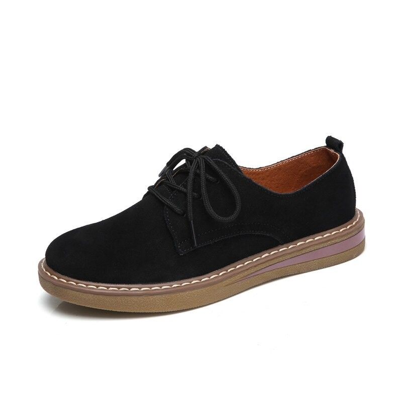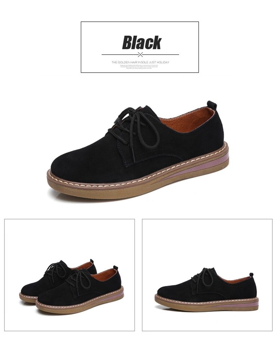 Baskets En Cuir Suédé Pour Femmes, Chaussures De Bateau À Bout Rond, Mocassins Plats Oxford Pour Femmes Printemps Chaussures Plates, À Lacets