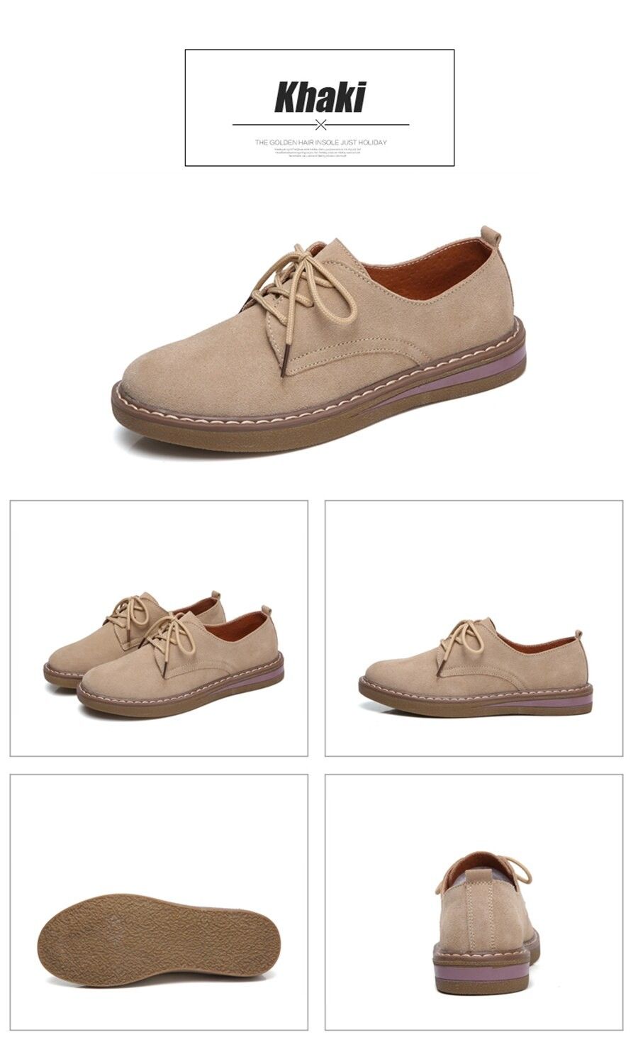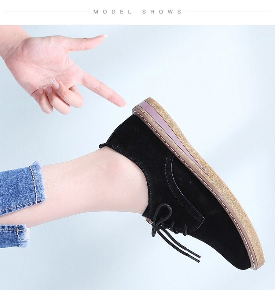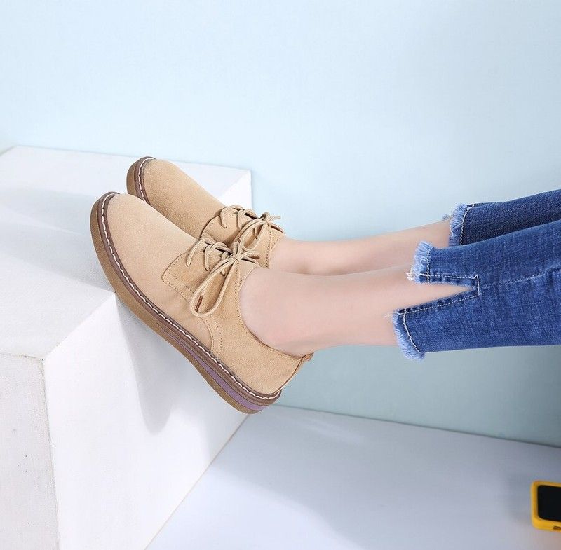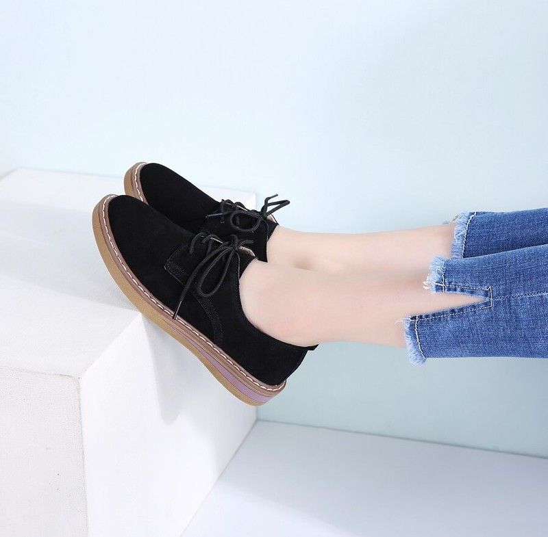 Baskets En Cuir Suédé Pour Femmes, Chaussures De Bateau À Bout Rond, Mocassins Plats Oxford Pour Femmes Printemps Chaussures Plates, À Lacets