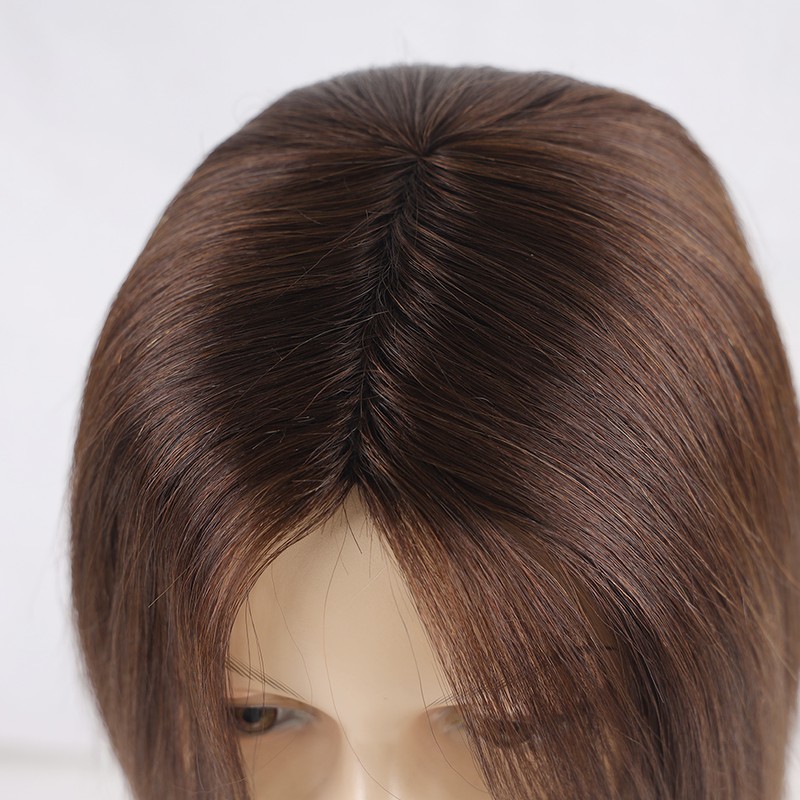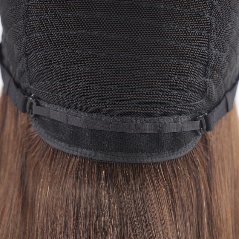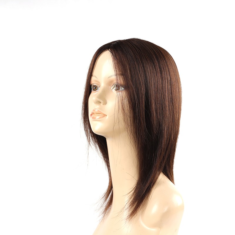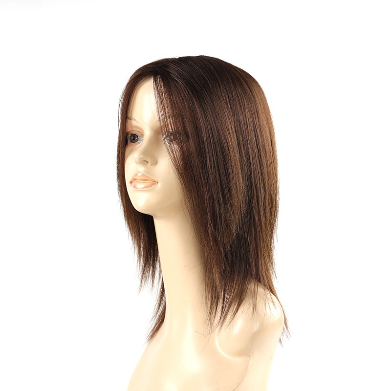 Perruques brésiliennes 100% naturelles Remy lisses avec raie au milieu, cheveux humains longs de 12 pouces avec couches, couleur marron, à la mode