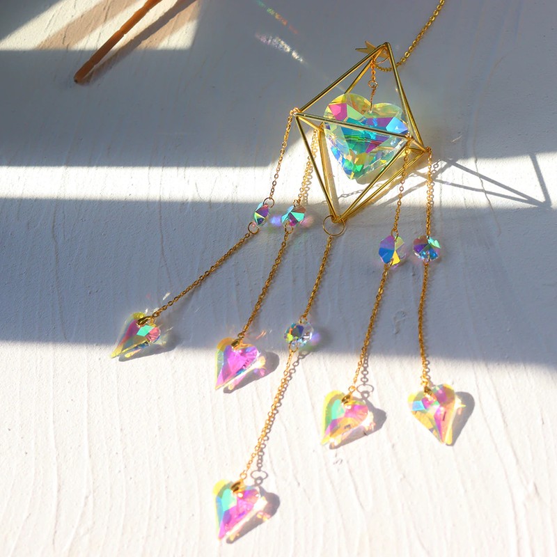 Pendentif en forme de cœur d'amour en cristal, accessoires d'éclairage pour rideaux de fenêtre, maison, jardin, voiture, cadeaux de décoration