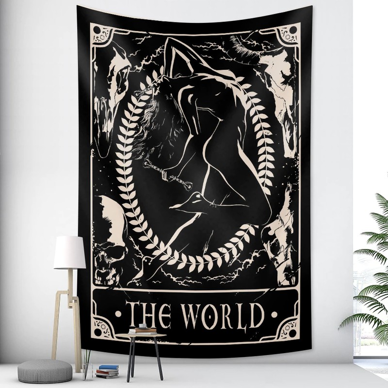 Carte De Tarot Scène Psychédélique Décoration De Maison, Tapisserie D'Art, Décoration Bohème Hippie Divination, Feuilles Murales Suspendues