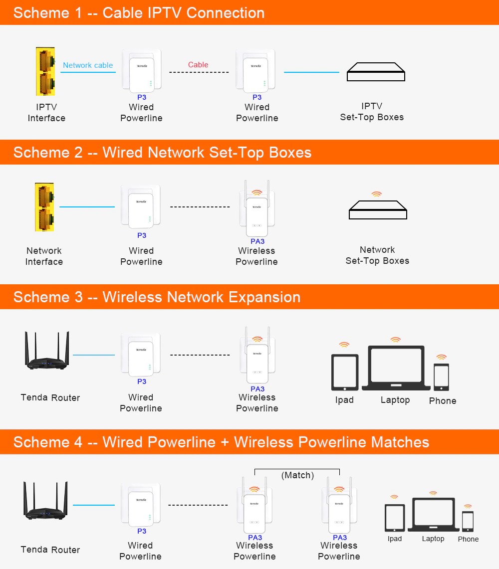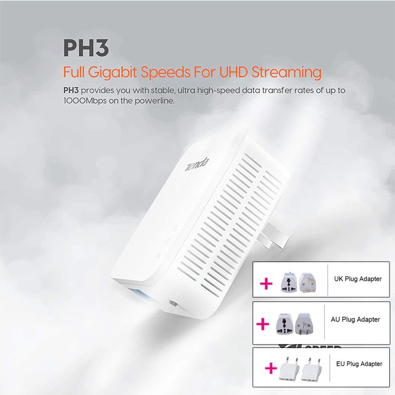 Avec la technologie avancée HomePlug AV2, PH3 fournit des taux de transfert de données stables et à grande vitesse allant jusqu'à 1000Mbps, fonctionne bien pour la vidéo HD 4K, le lecteur multimédia, le jeu en ligne
