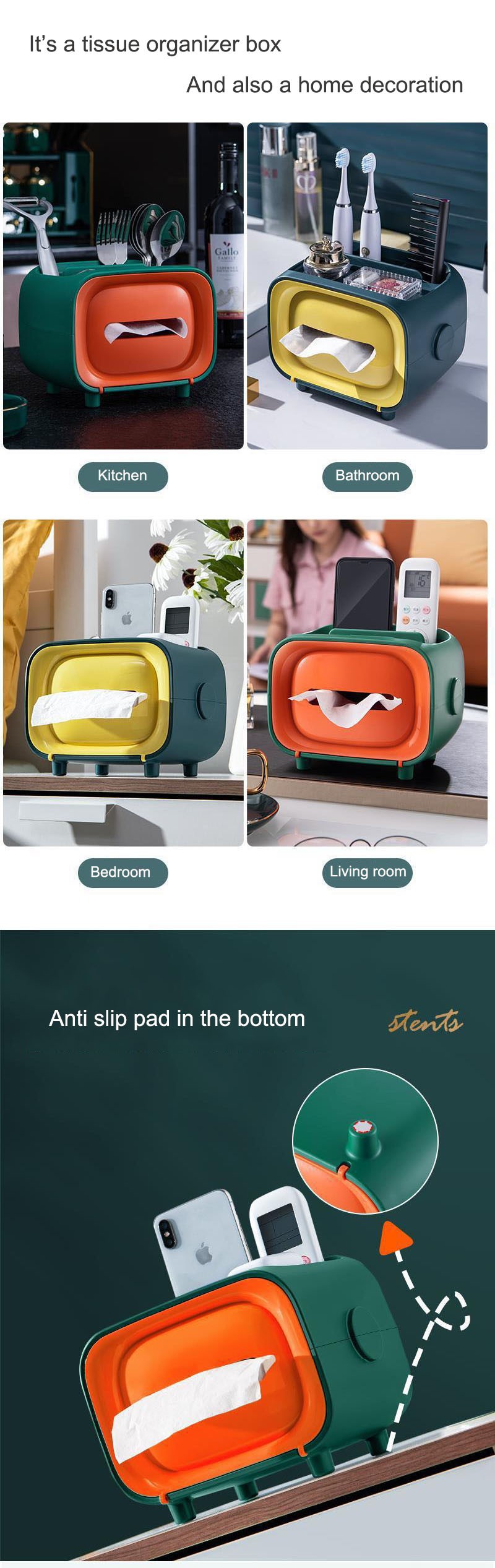 【 Haute qualité matériaux 】 Solide, épais et résistant aux chutes, fabriqué en polypropylène écologique, Abs + Pp + bois, sans odeur, sans bavures, coins lavables, polis et lisses, plus sûrs à utiliser, le support de boîte à mouchoirs utilise des patins antidérapants conçus pour le rendre stable, pas facile à tomber, Et la surface couverte est facile à nettoyer.