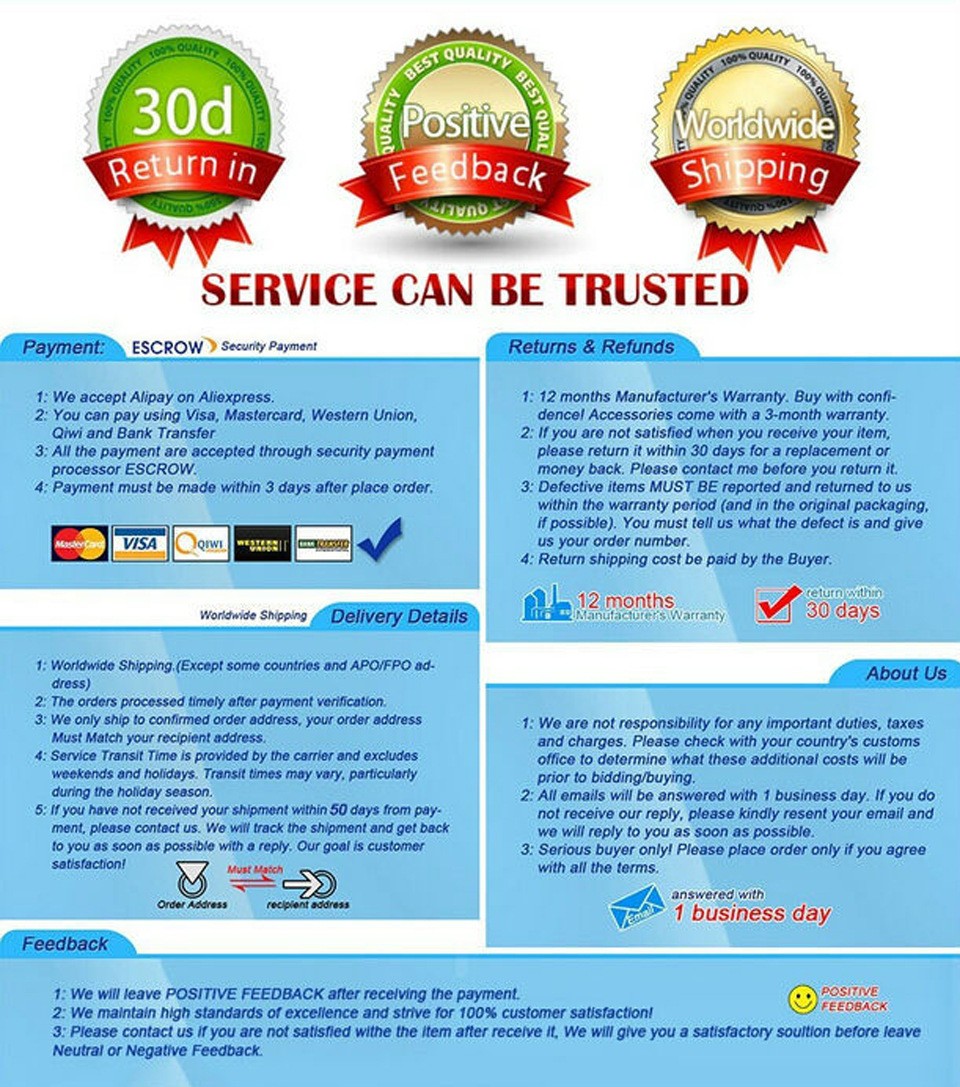 Taille de l'emballage: 13.7*12.4*34.8cm / 5.4*4.9 * 13.7in (L * L * H)