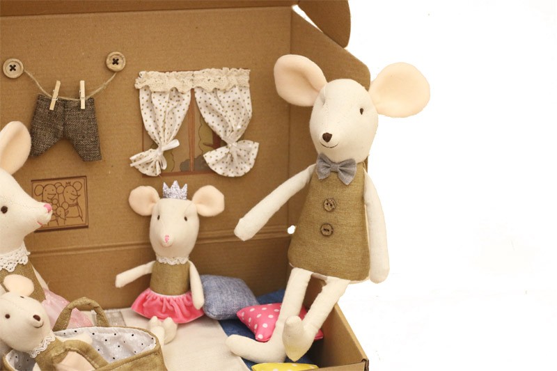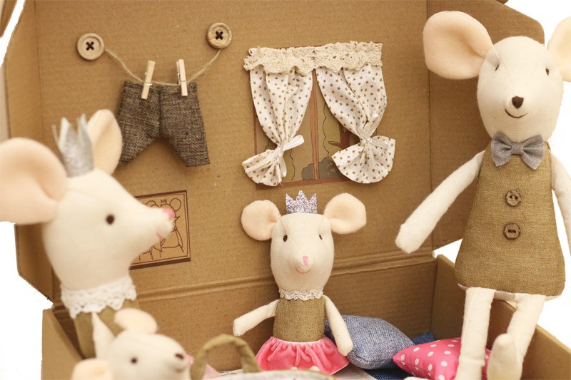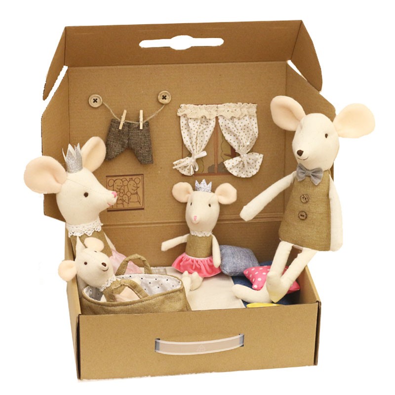 Mini Peluches La Famille Souris, Jouets Pour Enfant, Fille Et Garçon Fournies Avec Leur Boîte Maison De Poupée Très Mignon Idéal Pour Bébé ,
