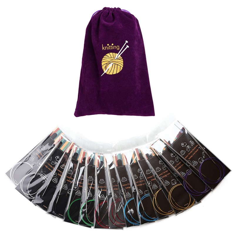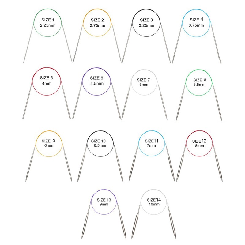 Ensemble D'Aiguilles À Tricoter Circulaires, Tube En Acier Inoxydable, 2.25-10Mm 14 Tailles 40-120Cm, 12 Aiguilles À Coudre Pour Tissage Diy