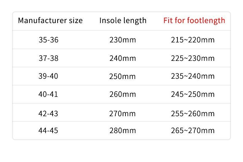 ★La taille de nos chaussures est une taille chinoise, pas une taille européenne, veuillez donc choisir votre taille en fonction de la longueur de vos pieds.