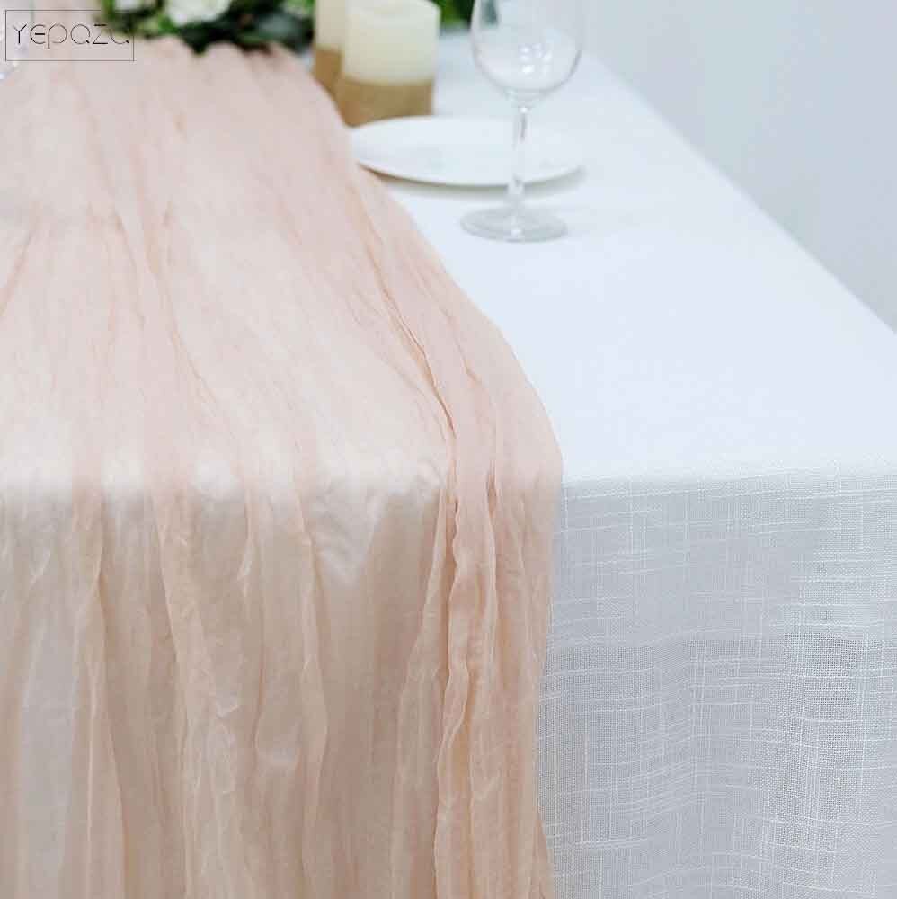 Chemin De Table En Gaze Rose De 60X400 Cm, Serviettes, Bannière Fête, Décoration De Mariage Personnalisée