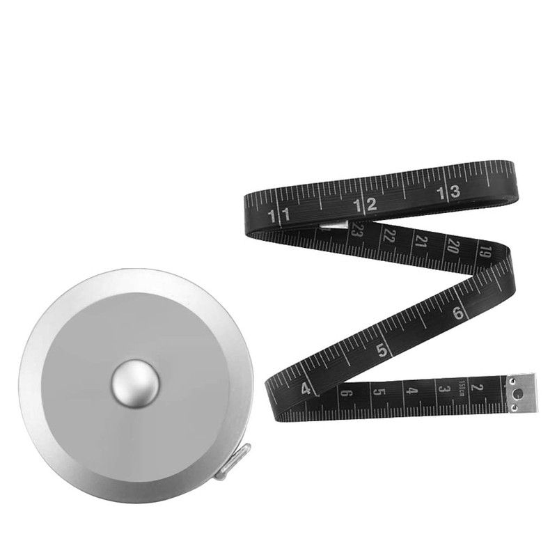 Ruban à mesurer avec bouton poussoir au centre pour rétracter le ruban. Léger, portable à transporter et à utiliser à tout moment