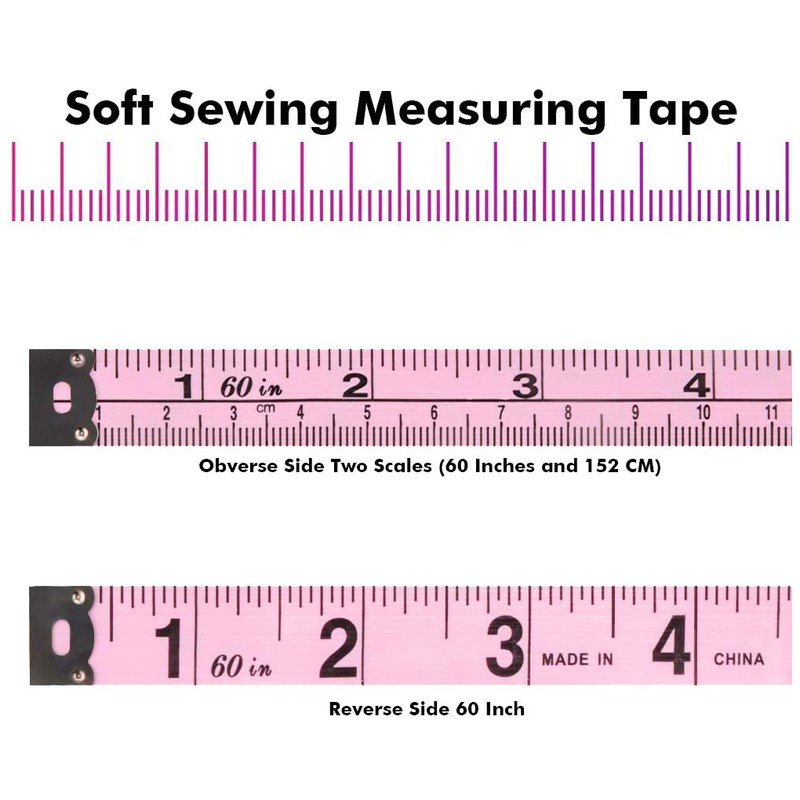 60 pouces/1.5 mètres de longueur, double face (impérial et métrique), imprimé avec précision en pouces et en centimètres. Marquages larges et clairs pour une lecture plus facile.